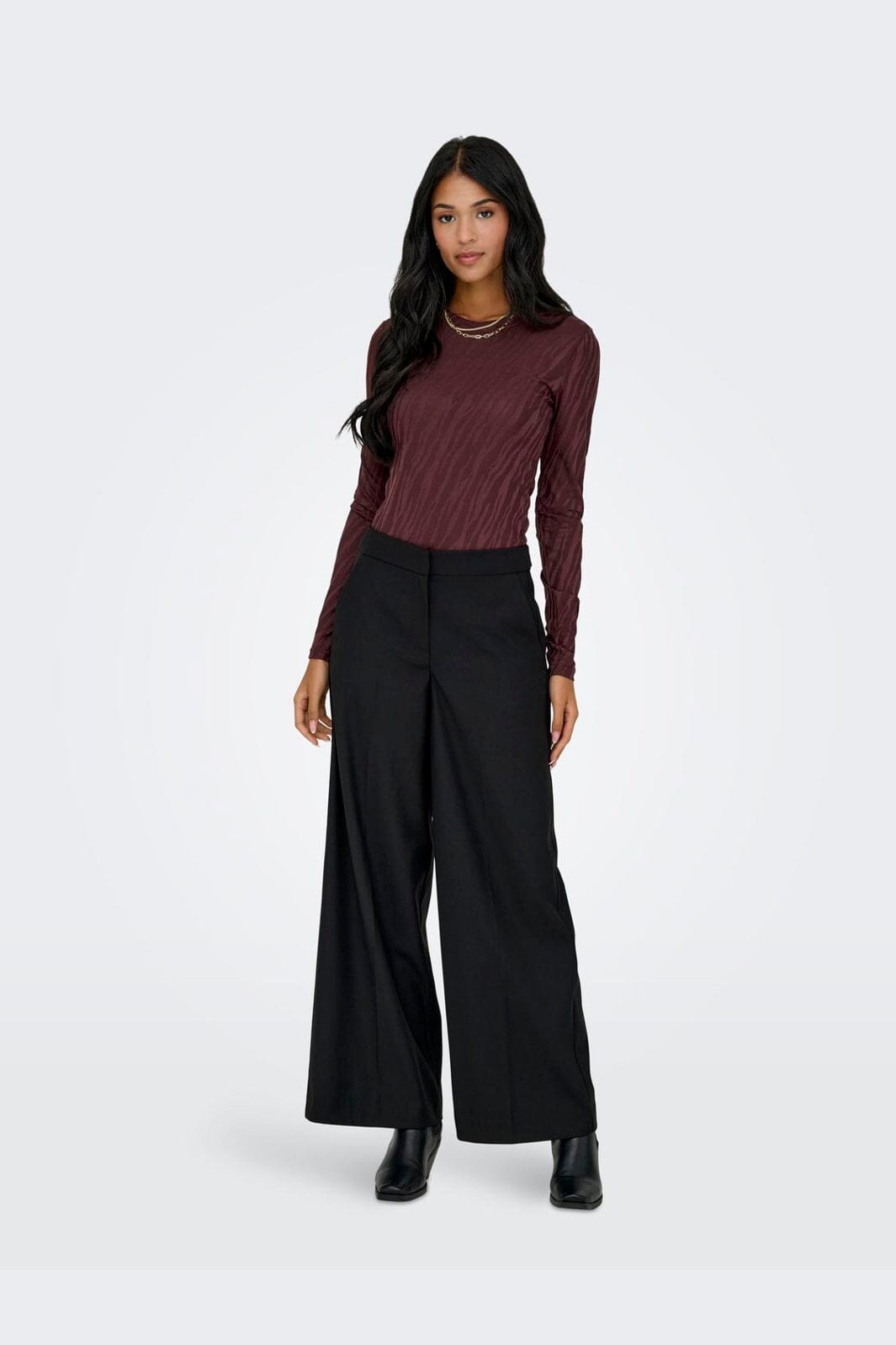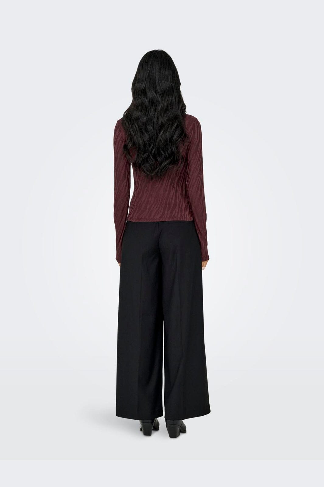 Langarmige top van Only met zebraprint in donker chocolade kleur. De top heeft een ronde halslijn en een slim fit-pasvorm, die een nauwsluitend silhouet geeft.