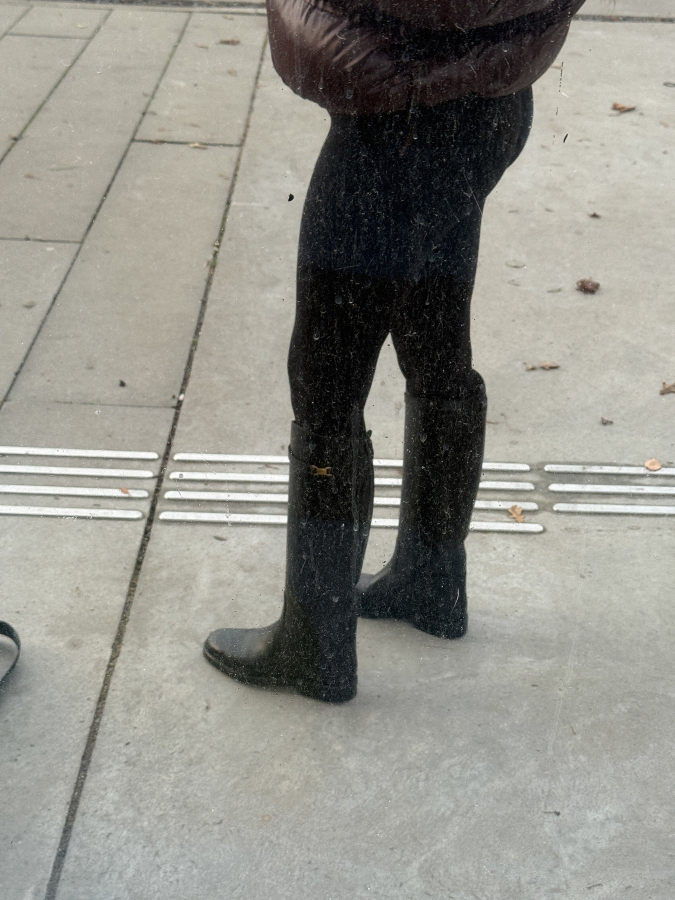 Hoge laars van Phenumb Copenhagen, gemaakt van zwart leer. De laars heeft een hoge schacht tot aan de knie en een decoratieve gesp bij de bovenkant.