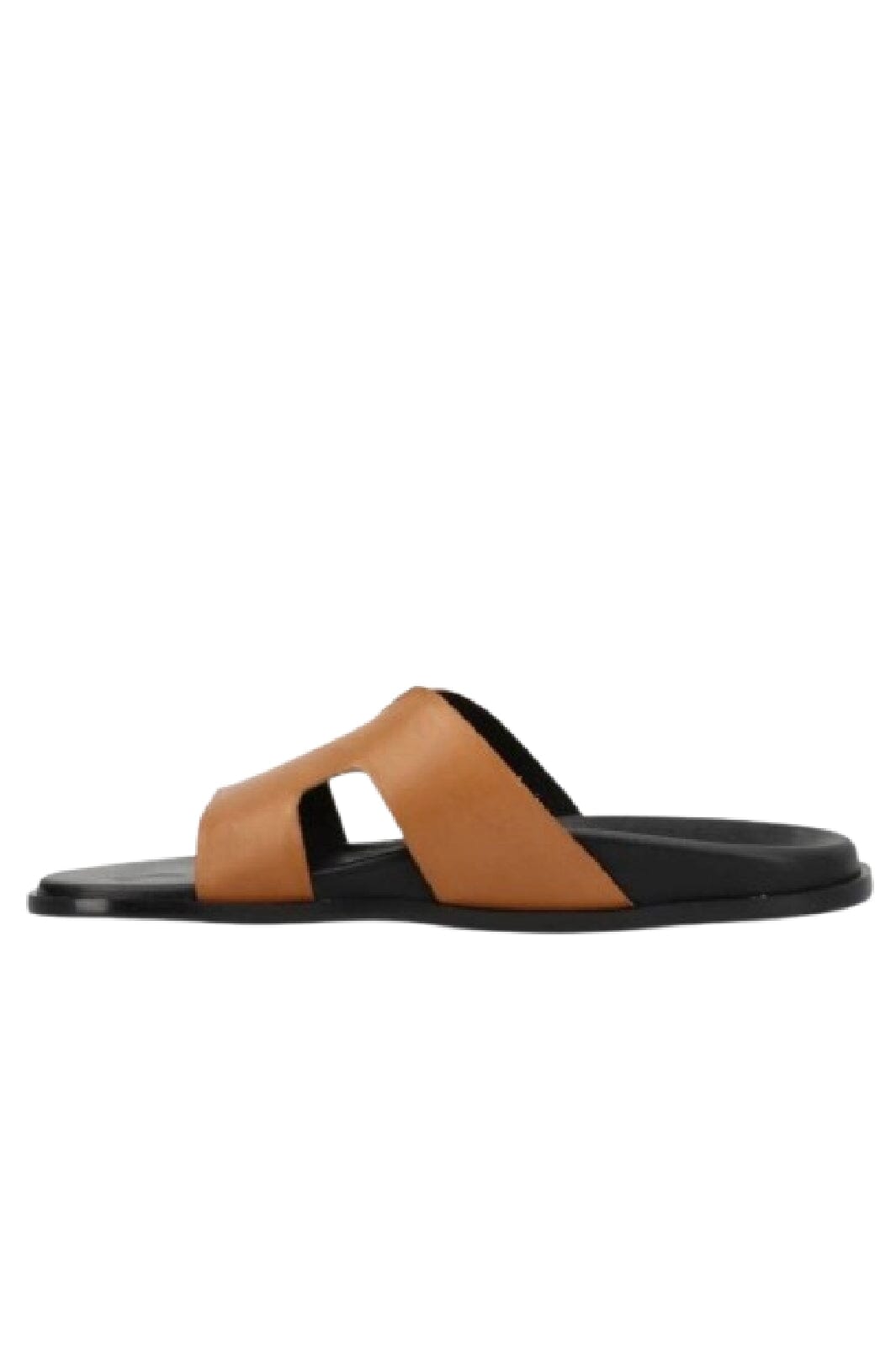 Leren sandaal van Phenumb Copenhagen in een warme cognackleur. Het zachte leer vormt zich naar de voet en biedt goed comfort bij gebruik. De sandalen hebben een strak en eenvoudig ontwerp.