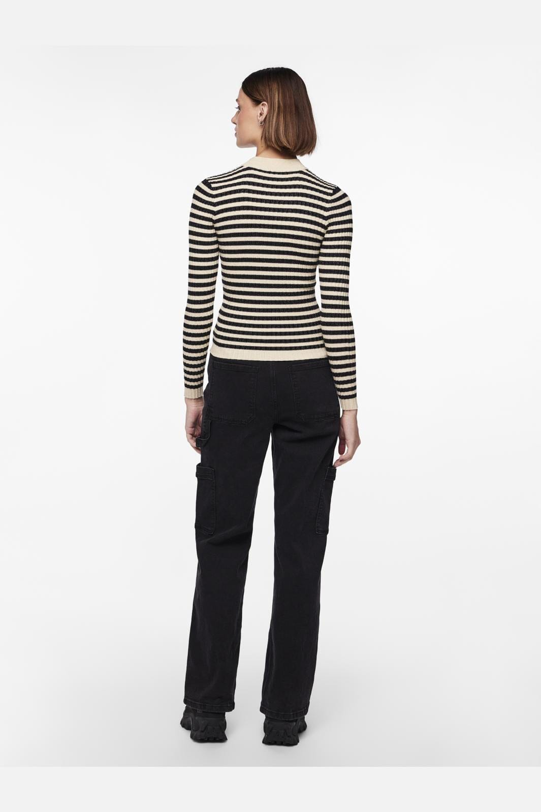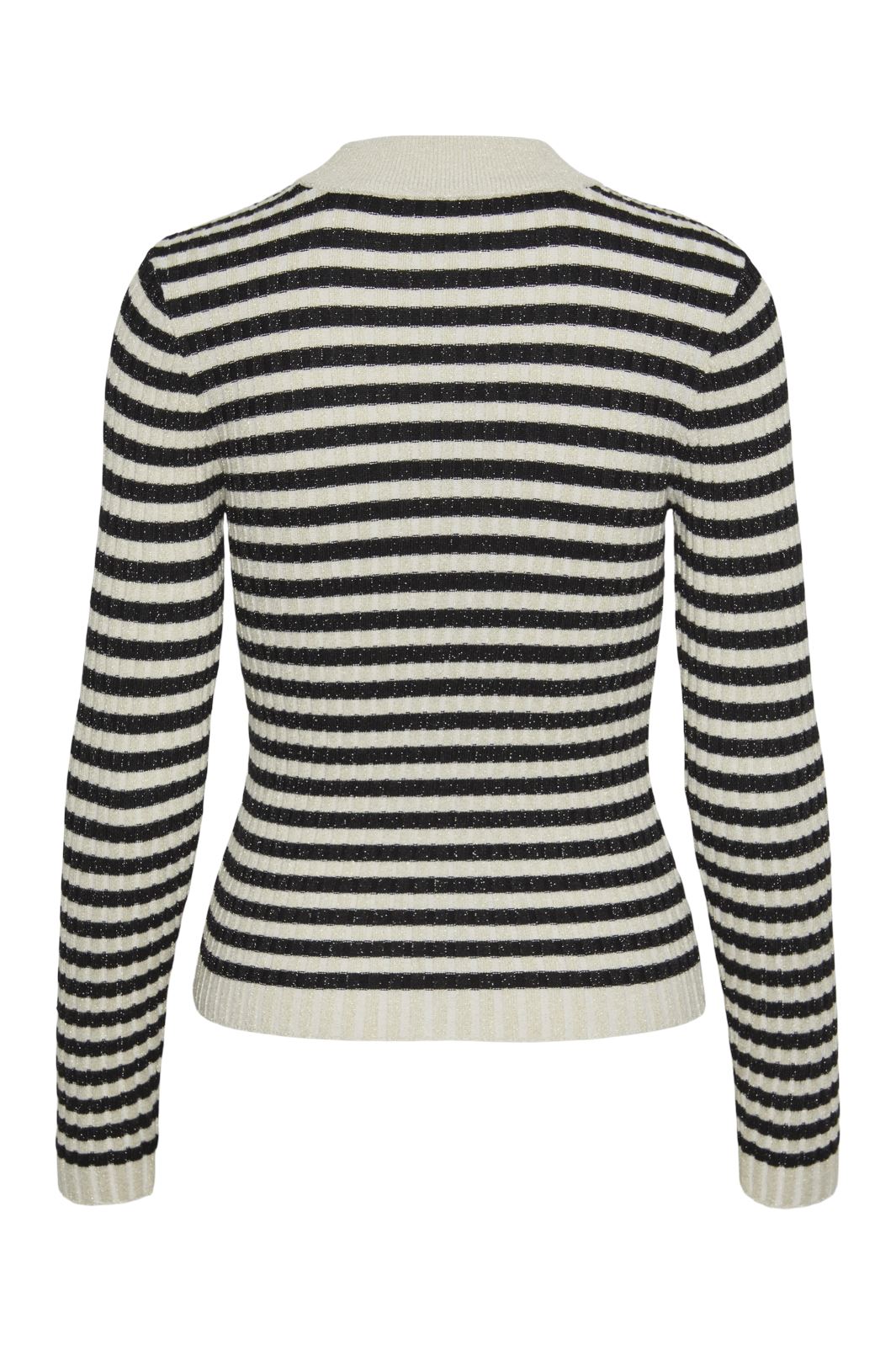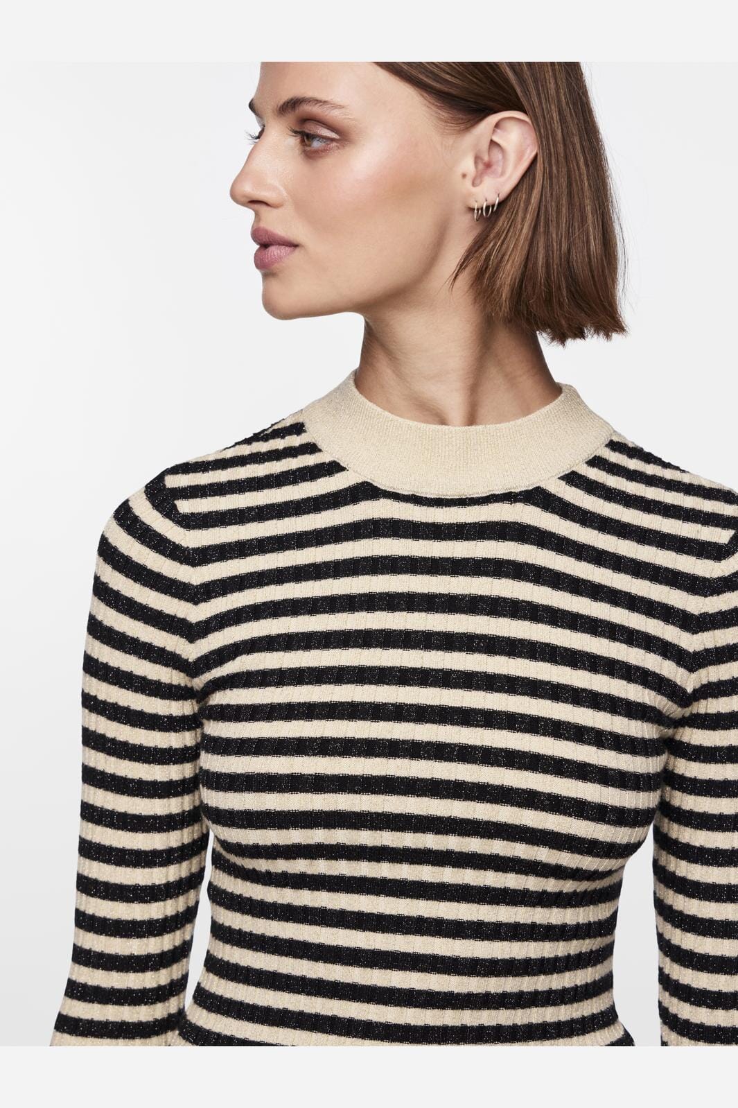 Pieces Pccrista Ls Lurex O-Neck Knit Mm Kleur: 4546398 Birch Black Stripes / Gold Lurex