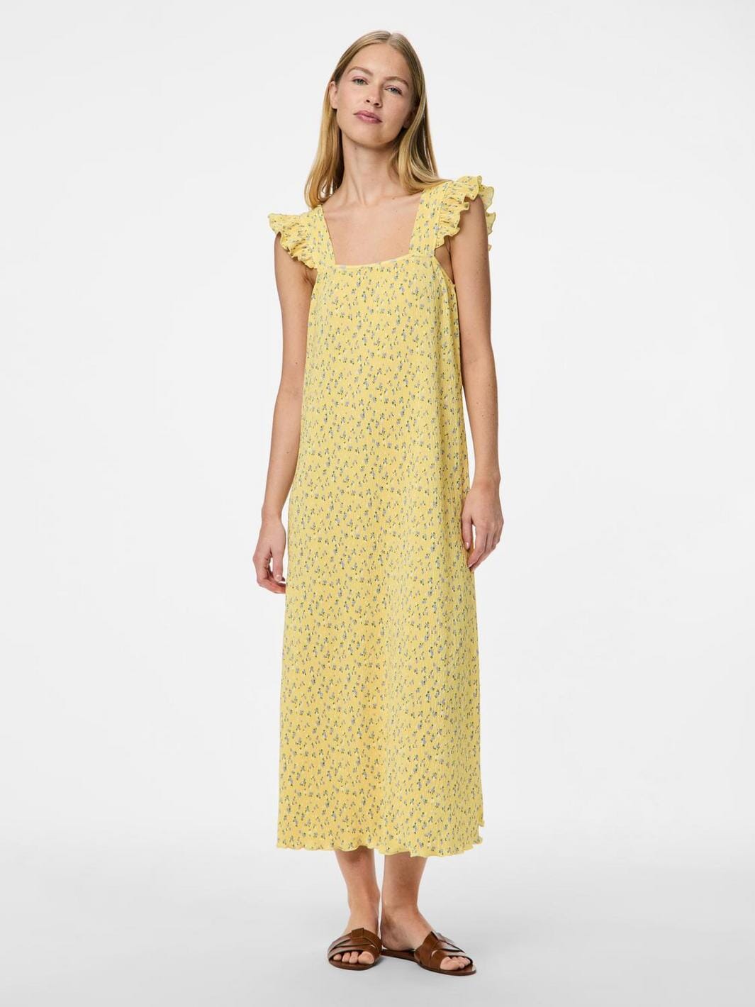 Pieces Pcflora Strap Flounce Dress Kleur: 4699183 Pale Banana Small Flower