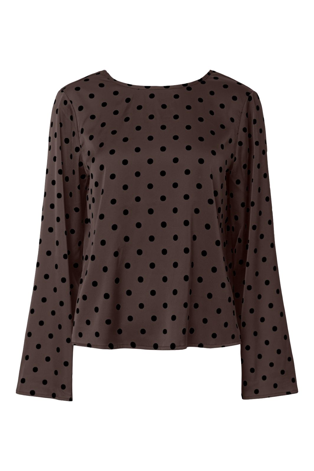 Pieces Pcjytta Ls Satin Top Kleur: 5069032 Hot Fudge Black Dots