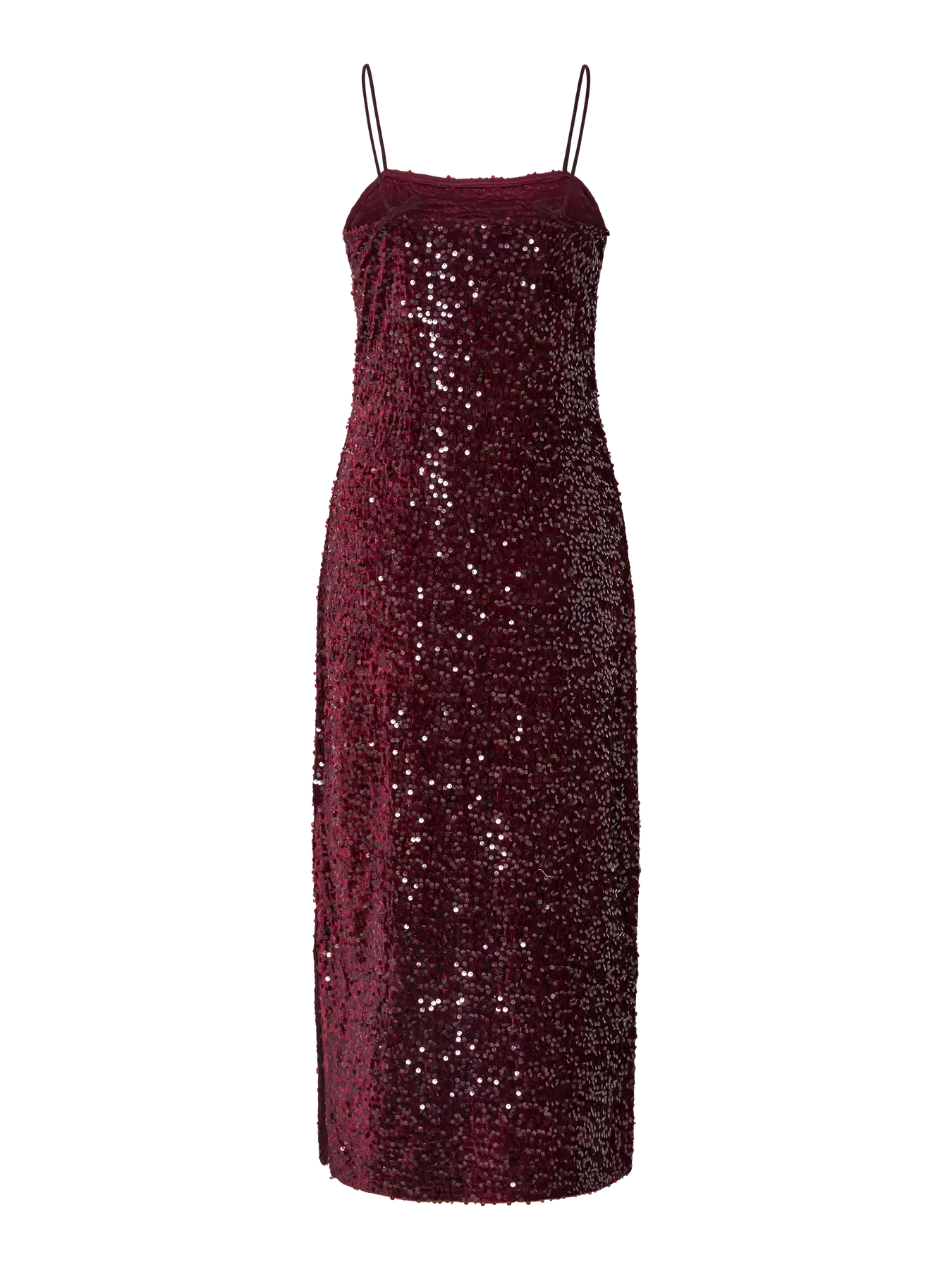Pieces Pckam Sl Ankle Slip Dress Kleur: 4883179 Tawny Port Tawney Port Sequins