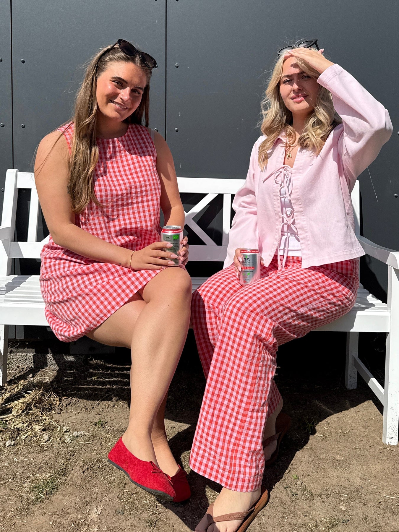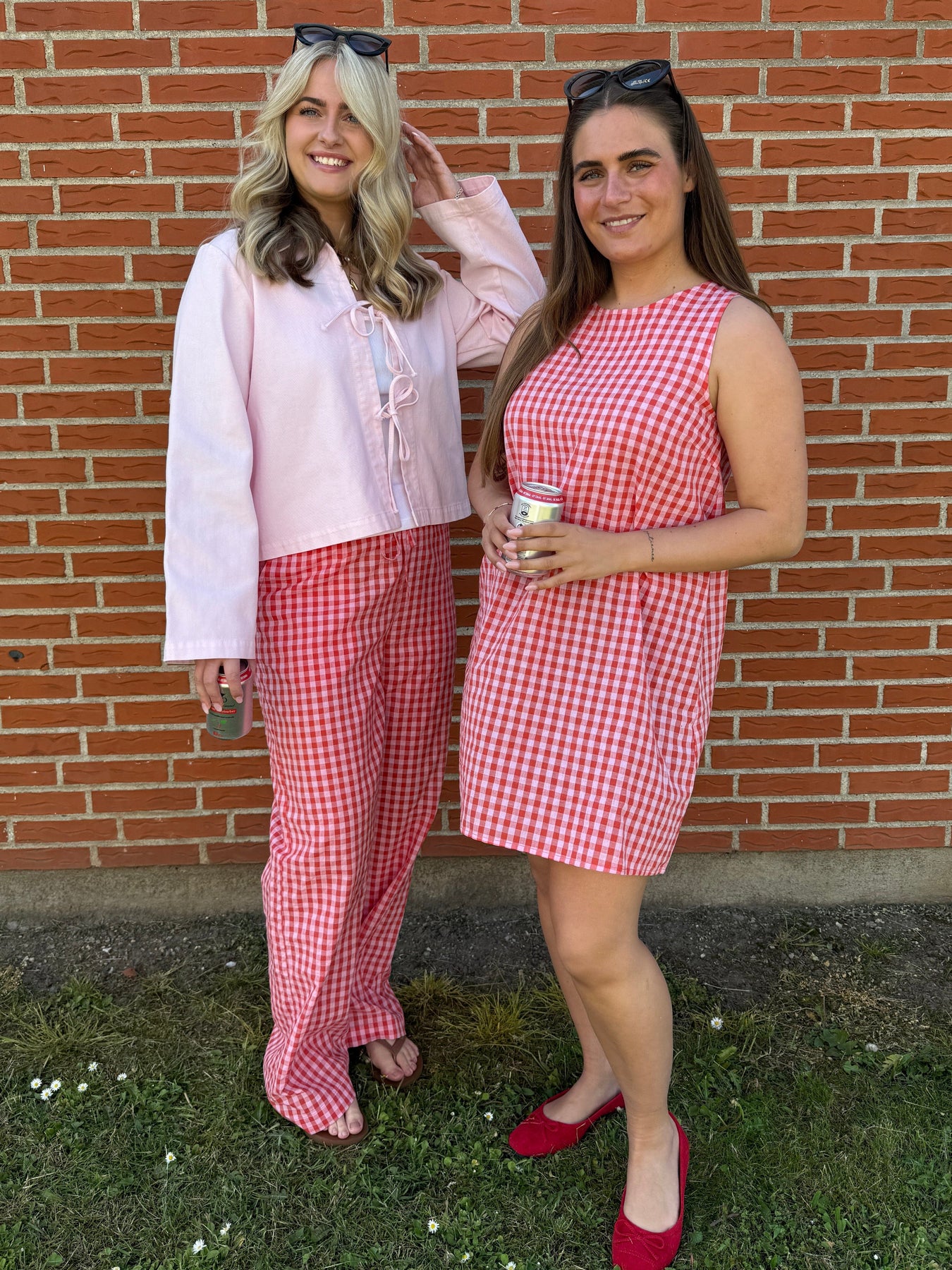 Korte jurk van Pieces in rood en wit met geruit gingham-patroon. De mouwloze jurk heeft een ronde halslijn en een rechte pasvorm.