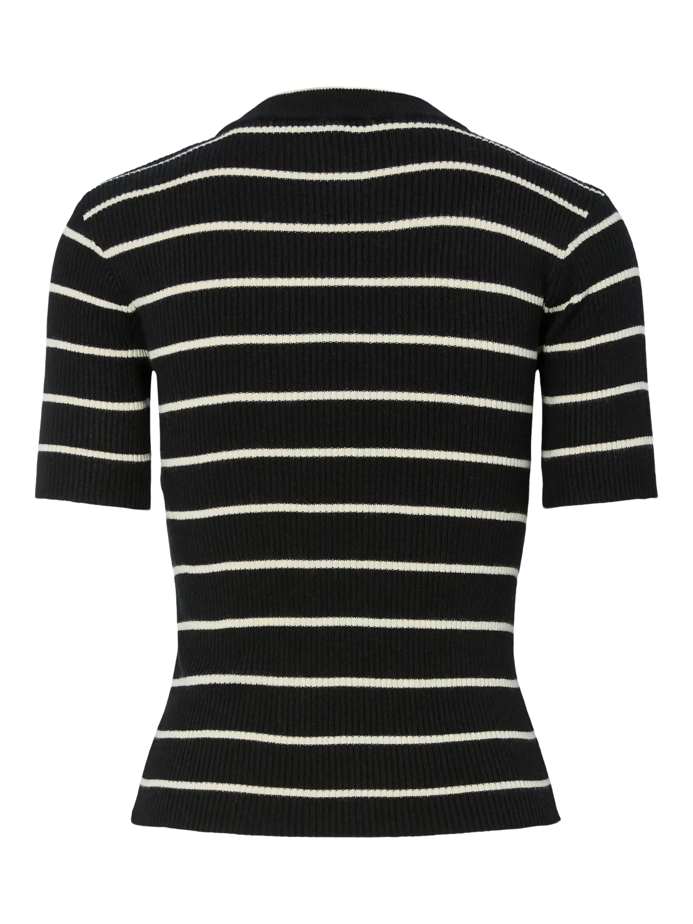 Gebreide top van Pieces met zwarte en lichte strepen. De top heeft korte mouwen en een ronde halslijn.