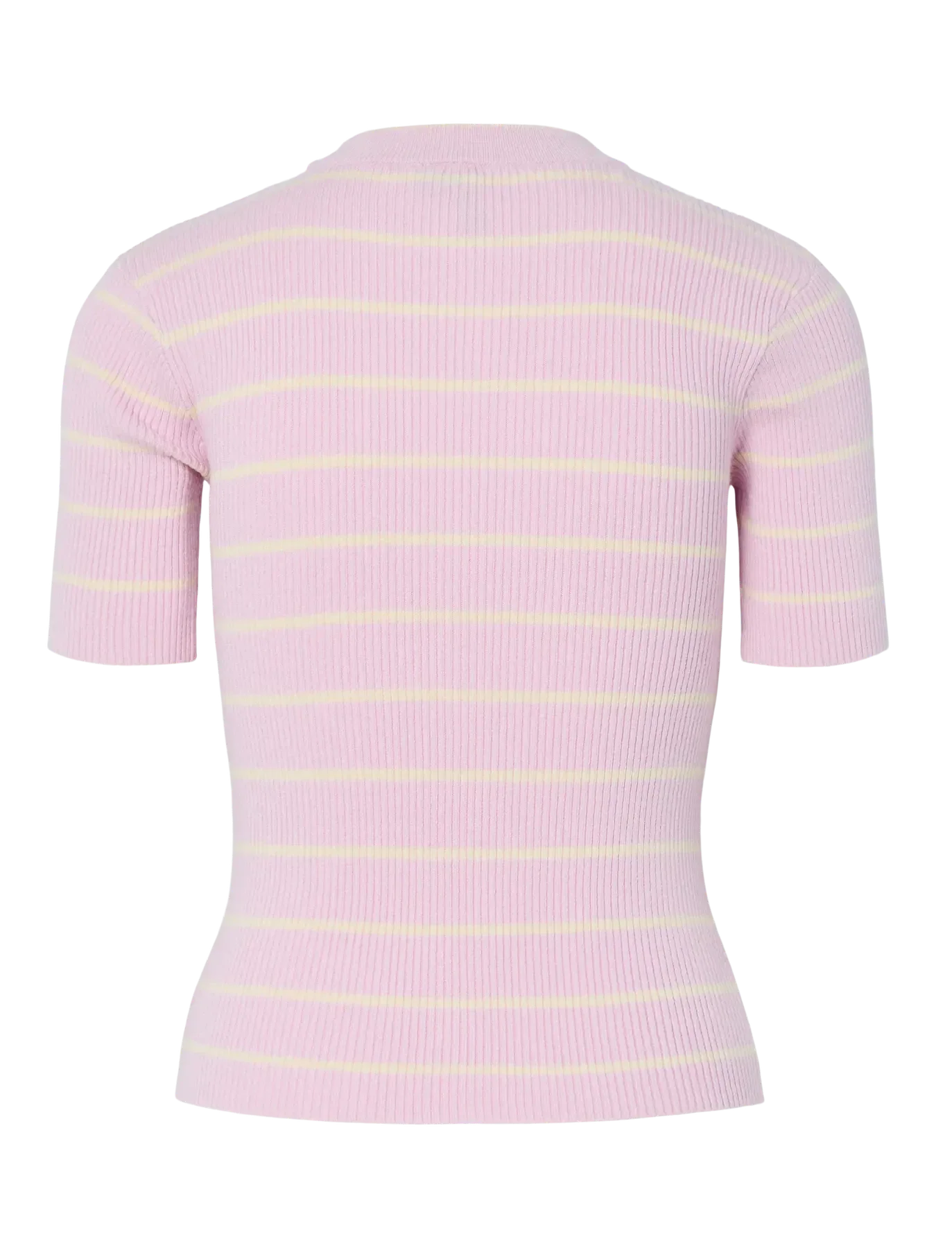 Gebreide top van Pieces in lichtpaars met roze strepen. De top heeft korte mouwen, een ronde halslijn en een aangesloten pasvorm.