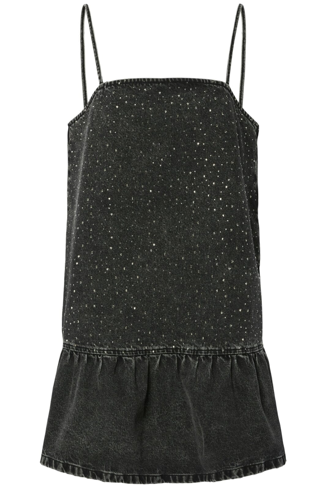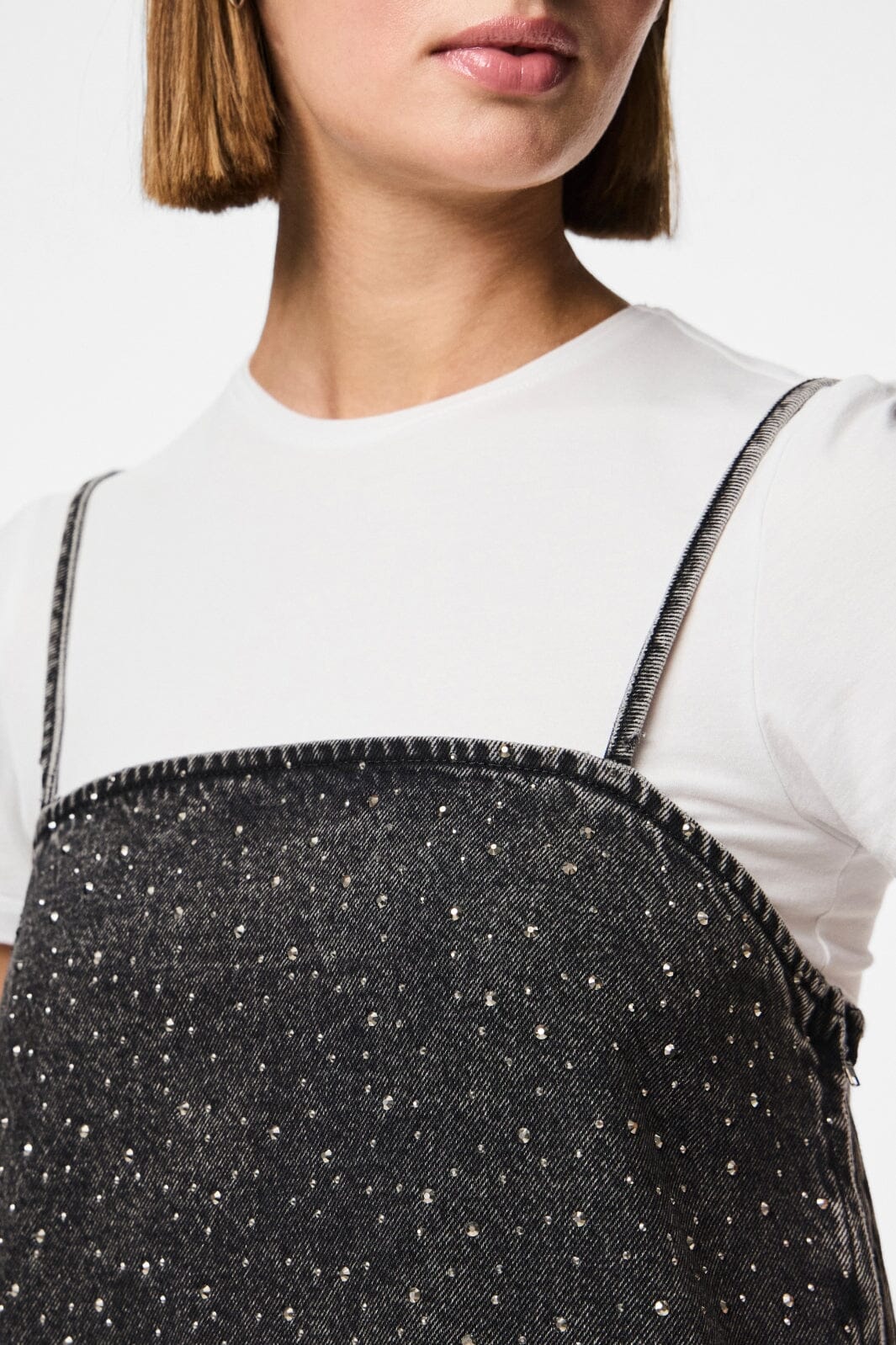 Pieces Pcnoel Short Slip Denim Dress Fsy Kleur: 4831482 Black Denim Rhinestones