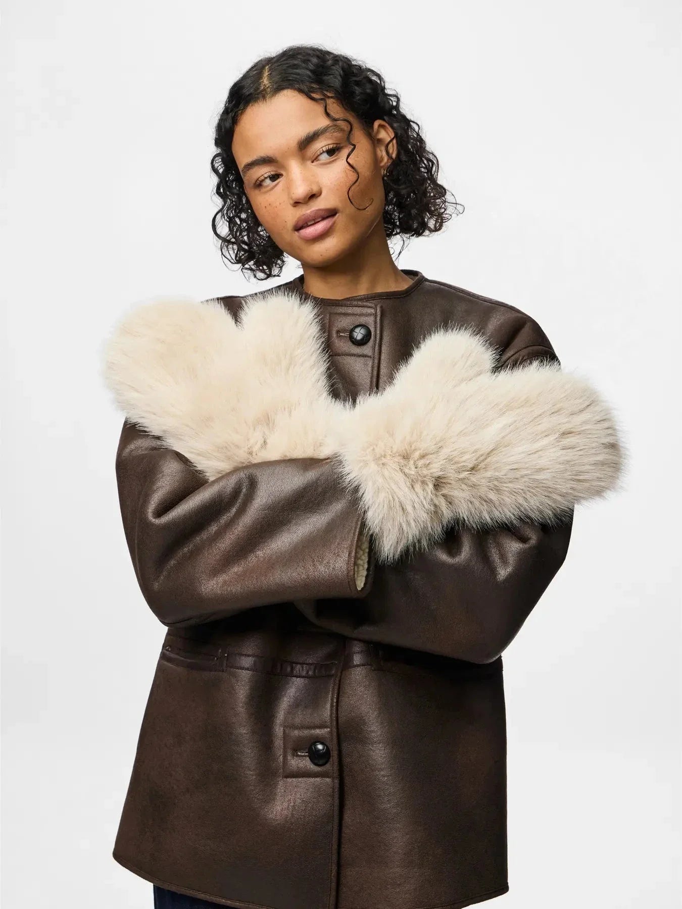 Pieces Pcplush Fluffy Mittens Kleur: 5023212 Porpoise Patchwork