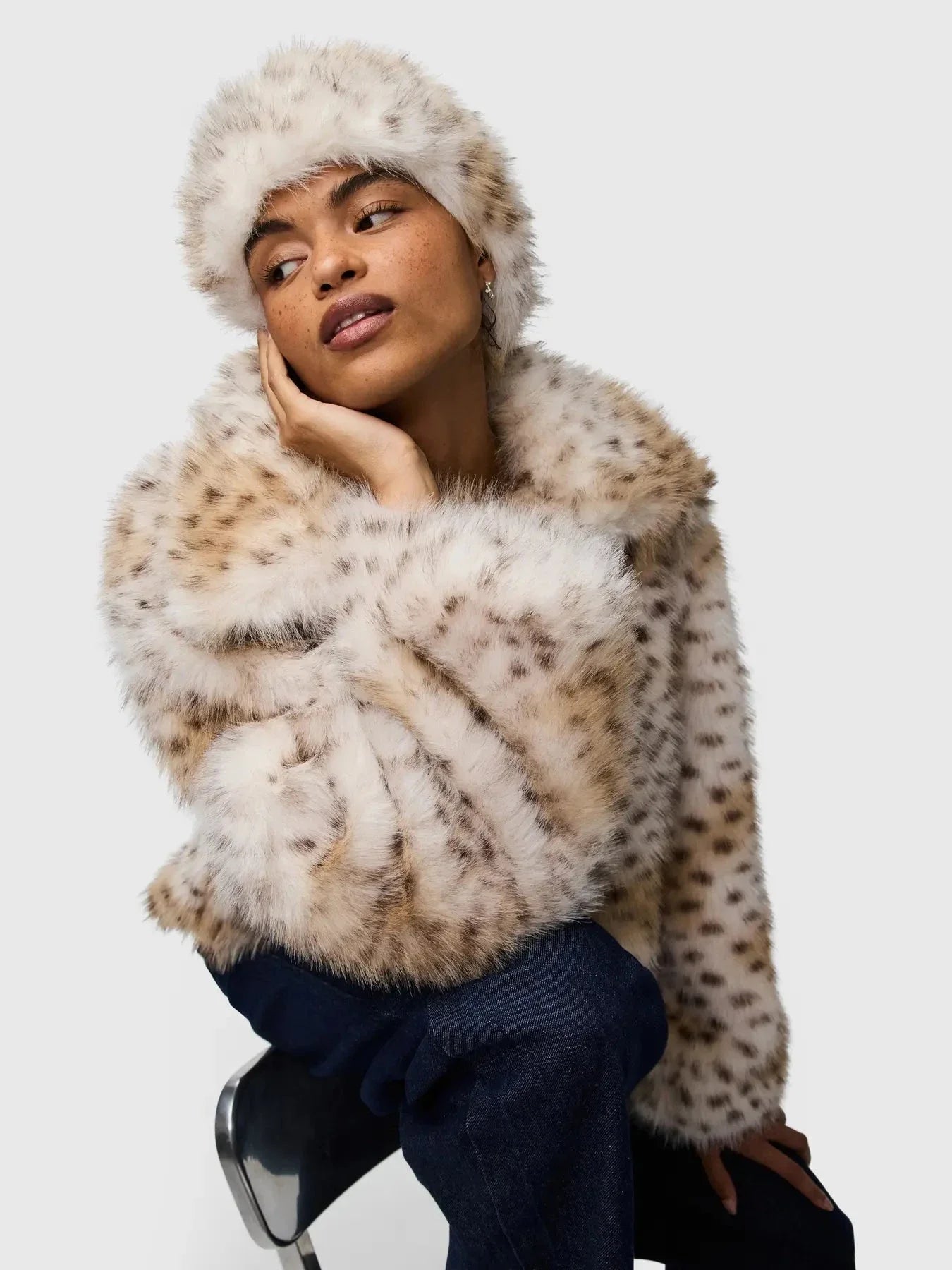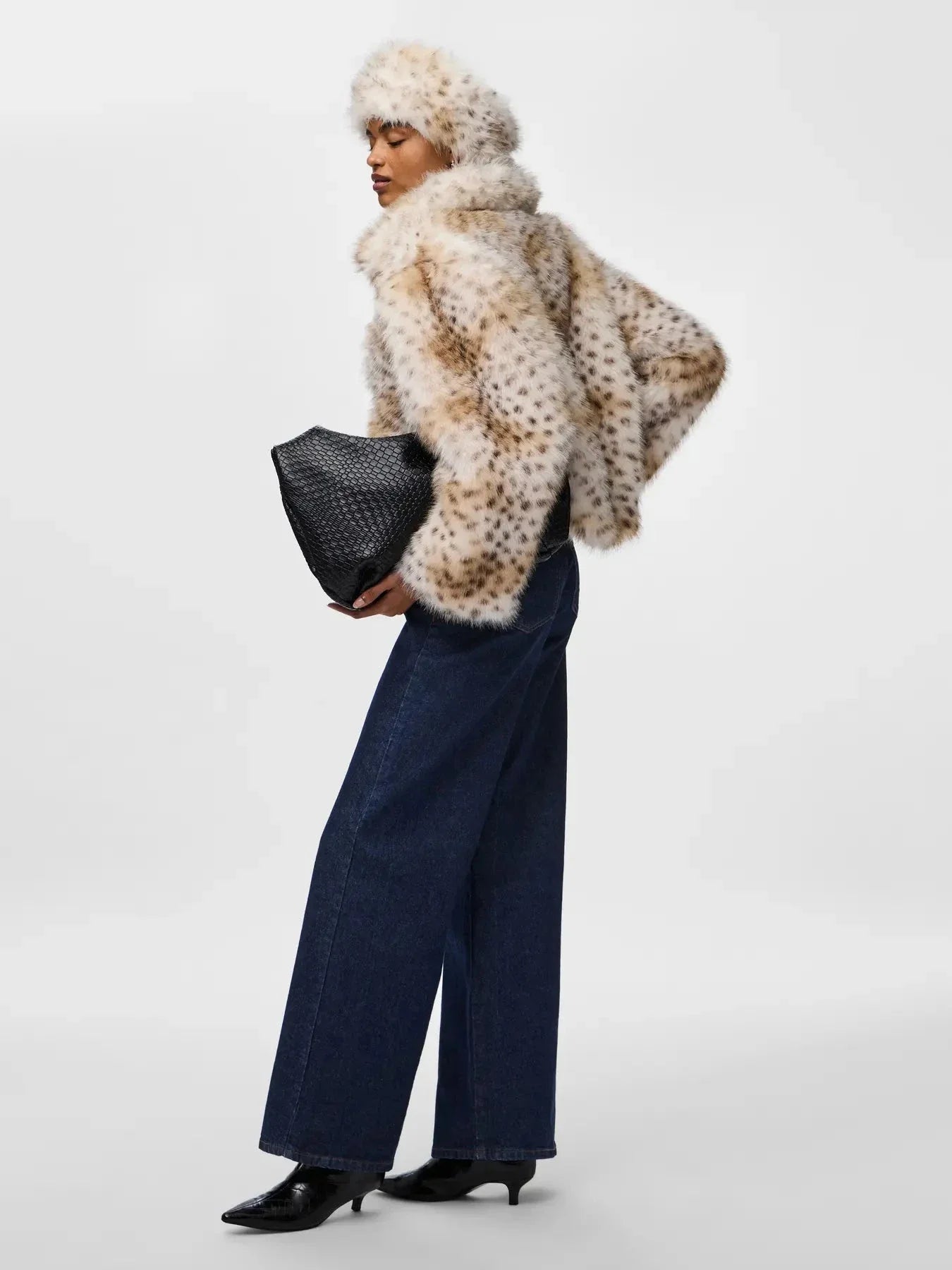 Pieces Pcplush Short Fluffy Jacket Kleur: 5023207 Cloud Dancer Leopard