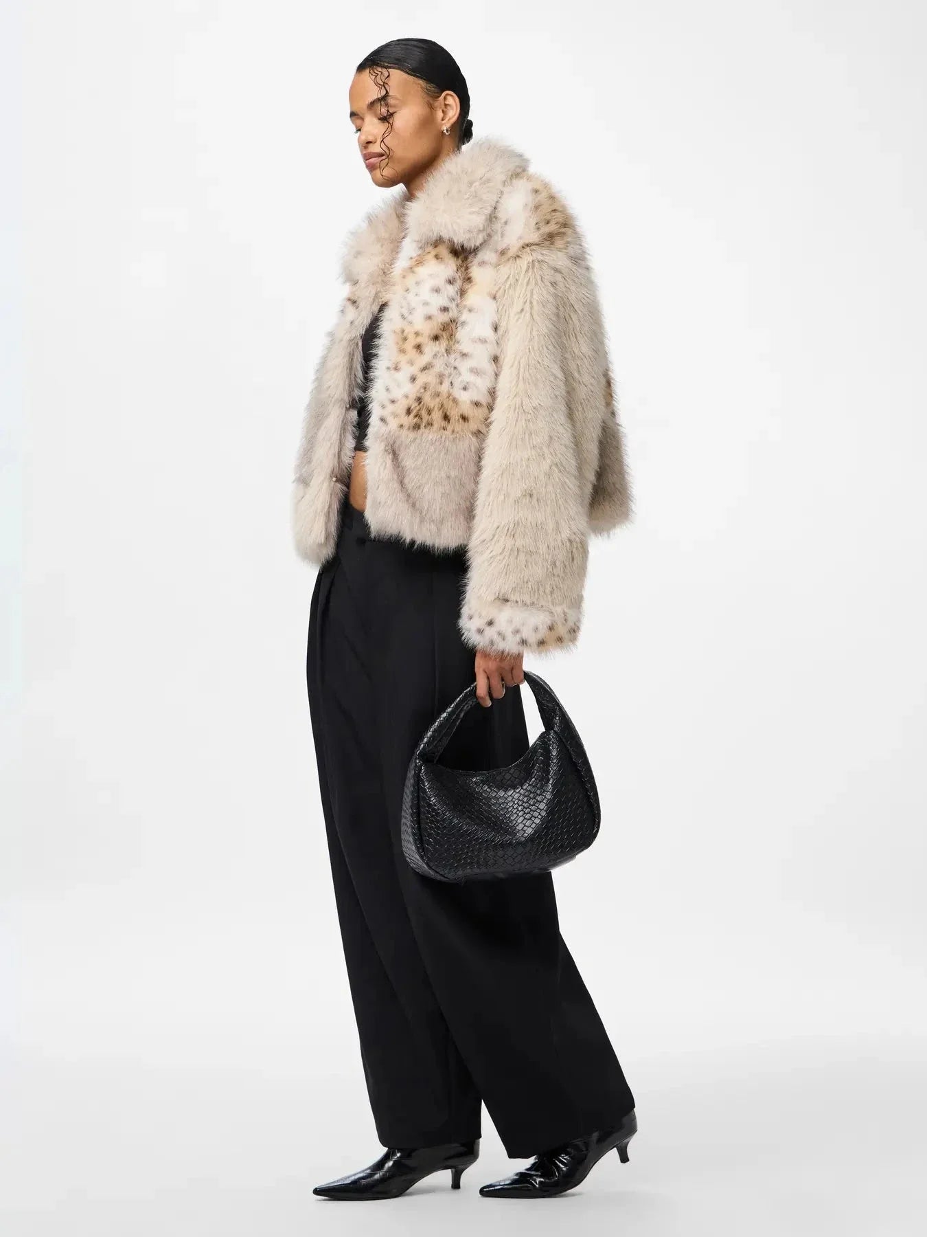 Pieces Pcplush Short Fluffy Jacket Kleur: 5023208 Porpoise Patchwork
