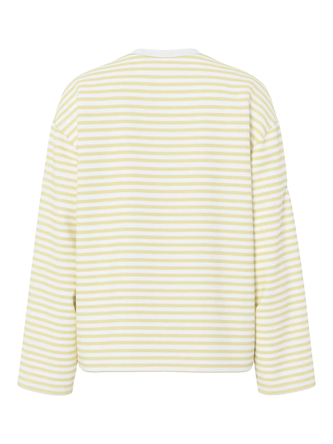 Gestreepte top met lange mouwen van Pieces in wit en lichtgeel. Hij heeft een oversized pasvorm en een ronde halslijn.