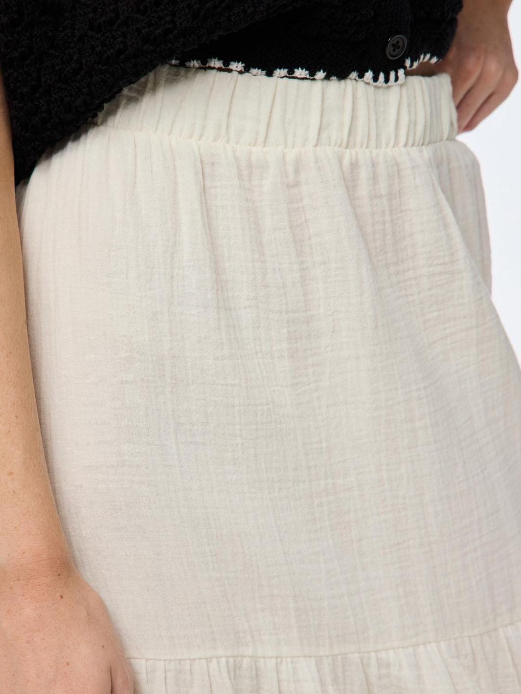 Maxi-rok van Pieces in een lichte, witte tint. Het is gemaakt van geweven katoen met een hoge taille en elastische tailleband. De rok heeft een gelaagd ontwerp met meerdere lagen.