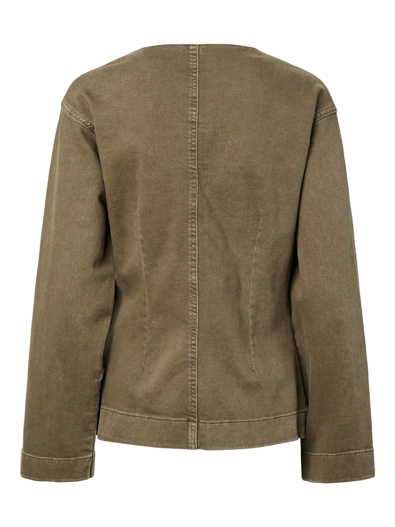 Pieces Pcsilke Ls Col Denim Shirt Kleur: 5003563 Military Olive