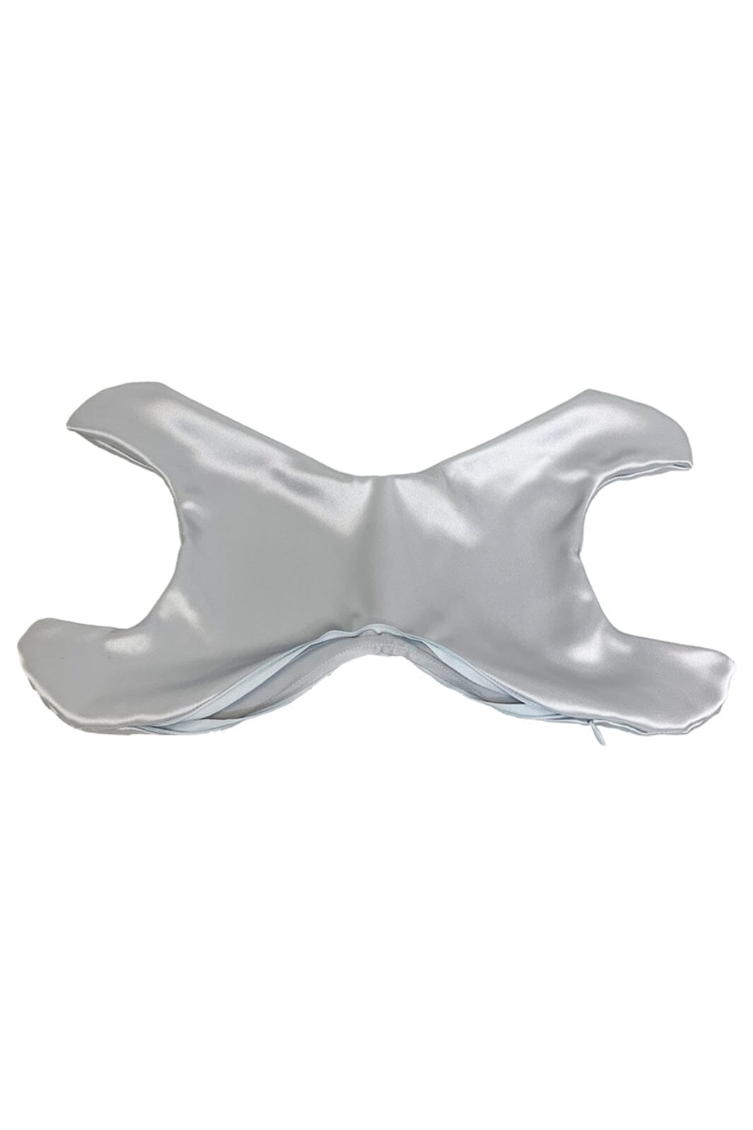 Kussensloop van Save My Face in zilverkleurige charmeuse-zijde. Het sloop heeft een glad oppervlak en is ontworpen voor het La Petite-kussen met een kenmerkende X-vorm.