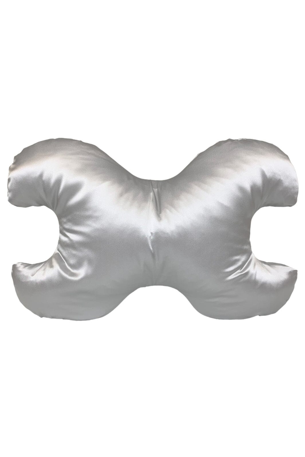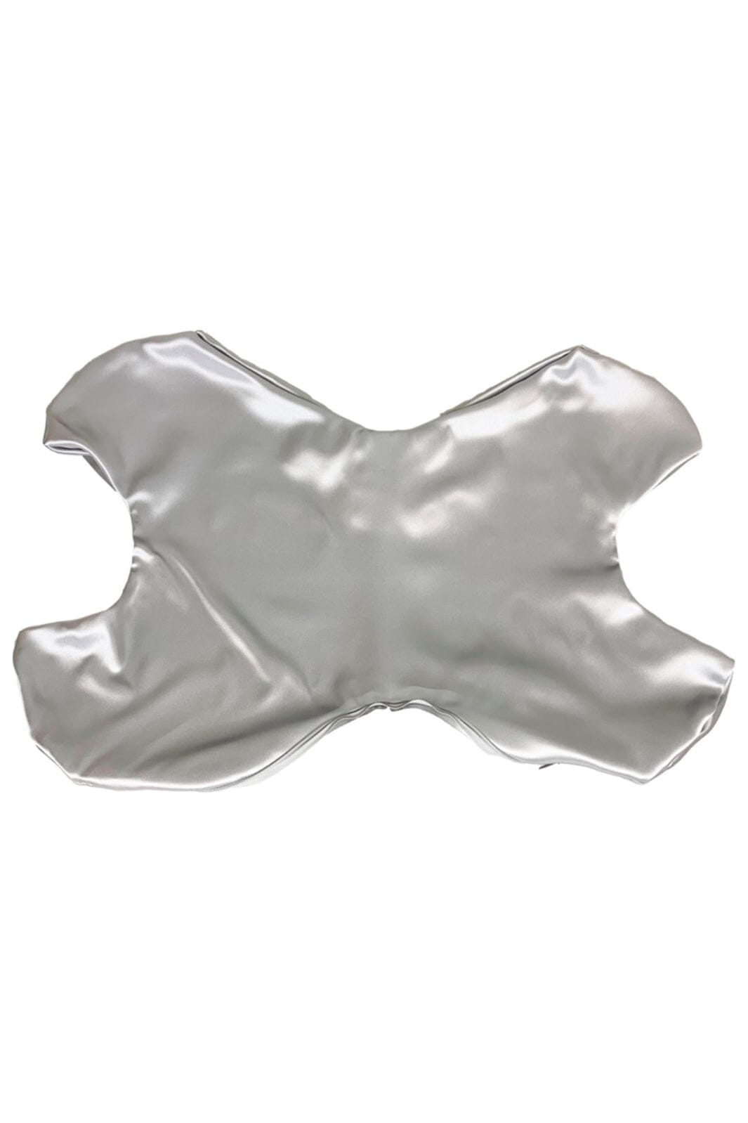 Seidenhoes van Save My Face in zilver voor het Le Grand-kussen. De hoes is gemaakt van charmeuse-zijde met een gladde en glanzende oppervlakte die de hele nacht voor goed comfort zorgt.