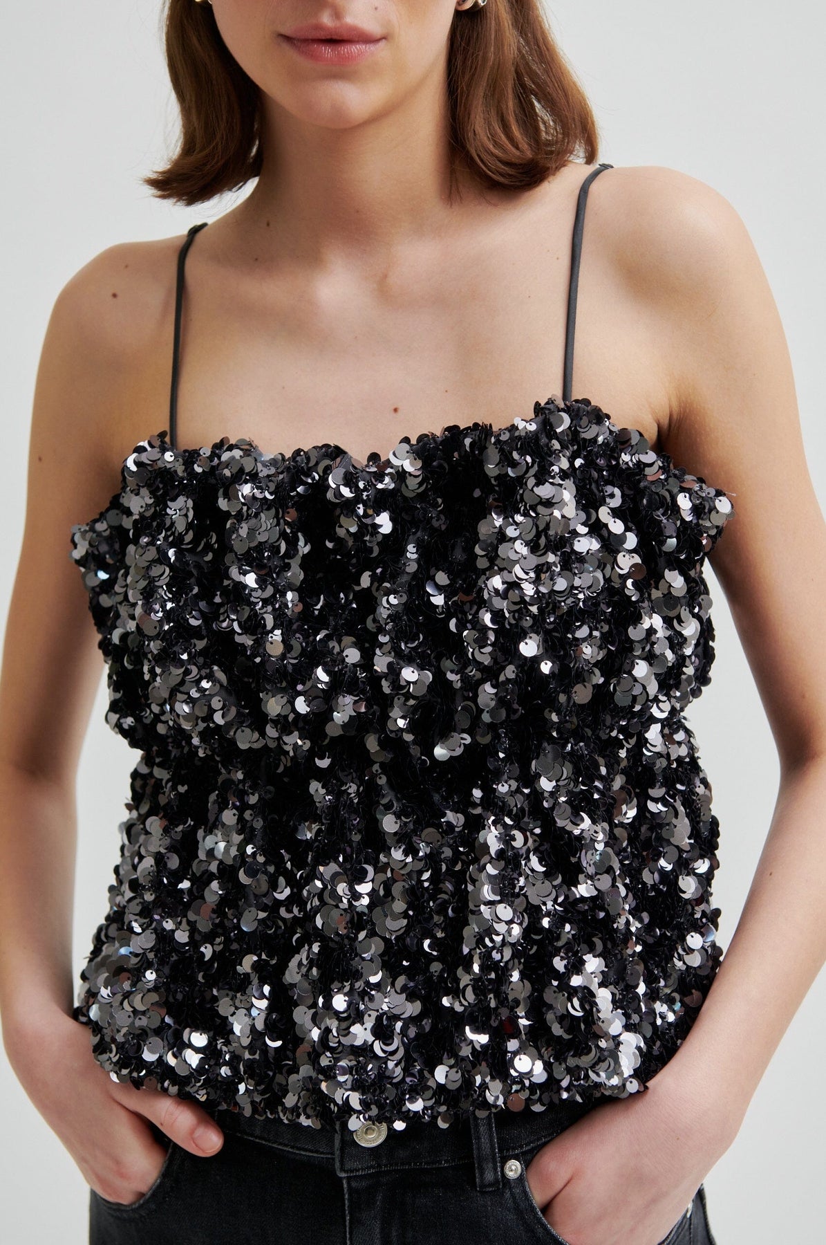 Second Female Sfshiny Strap Top 60229 Kleur: 7049 Gungrey Metal