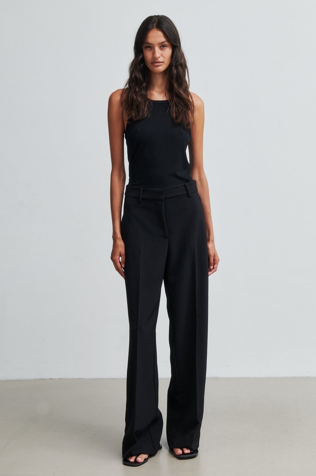 Zwart tanktopje van Second Female met een geribde structuur. Het heeft een mouwloos design en een ronde halslijn.
