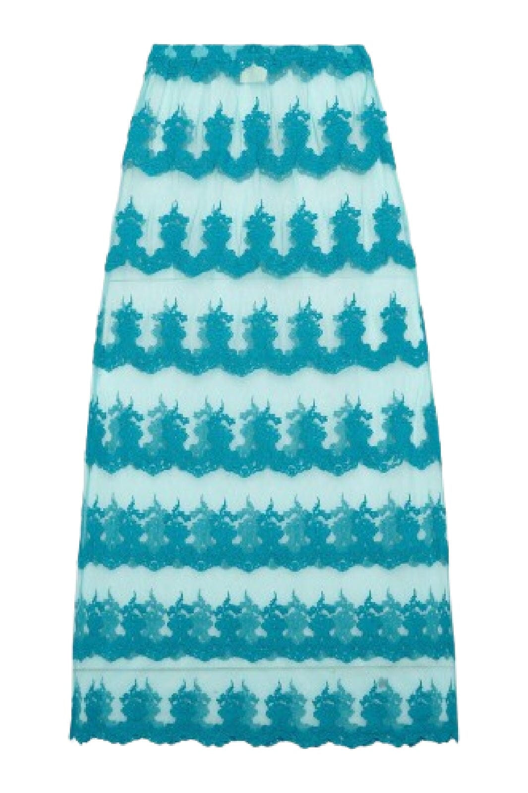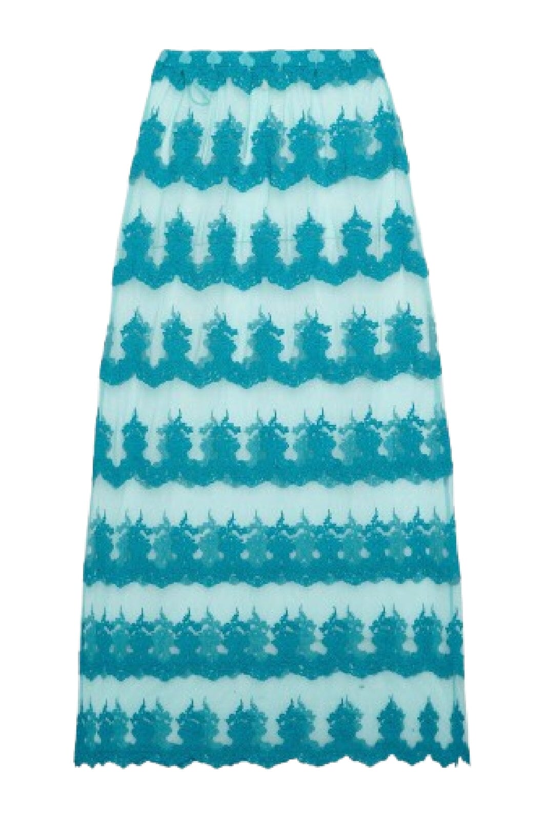 Tule rok van Sissel Edelbo in jadekleurig gerecycled nylon. De lange rok heeft fijne kantdetails en een losse pasvorm met elastiek in de taille.