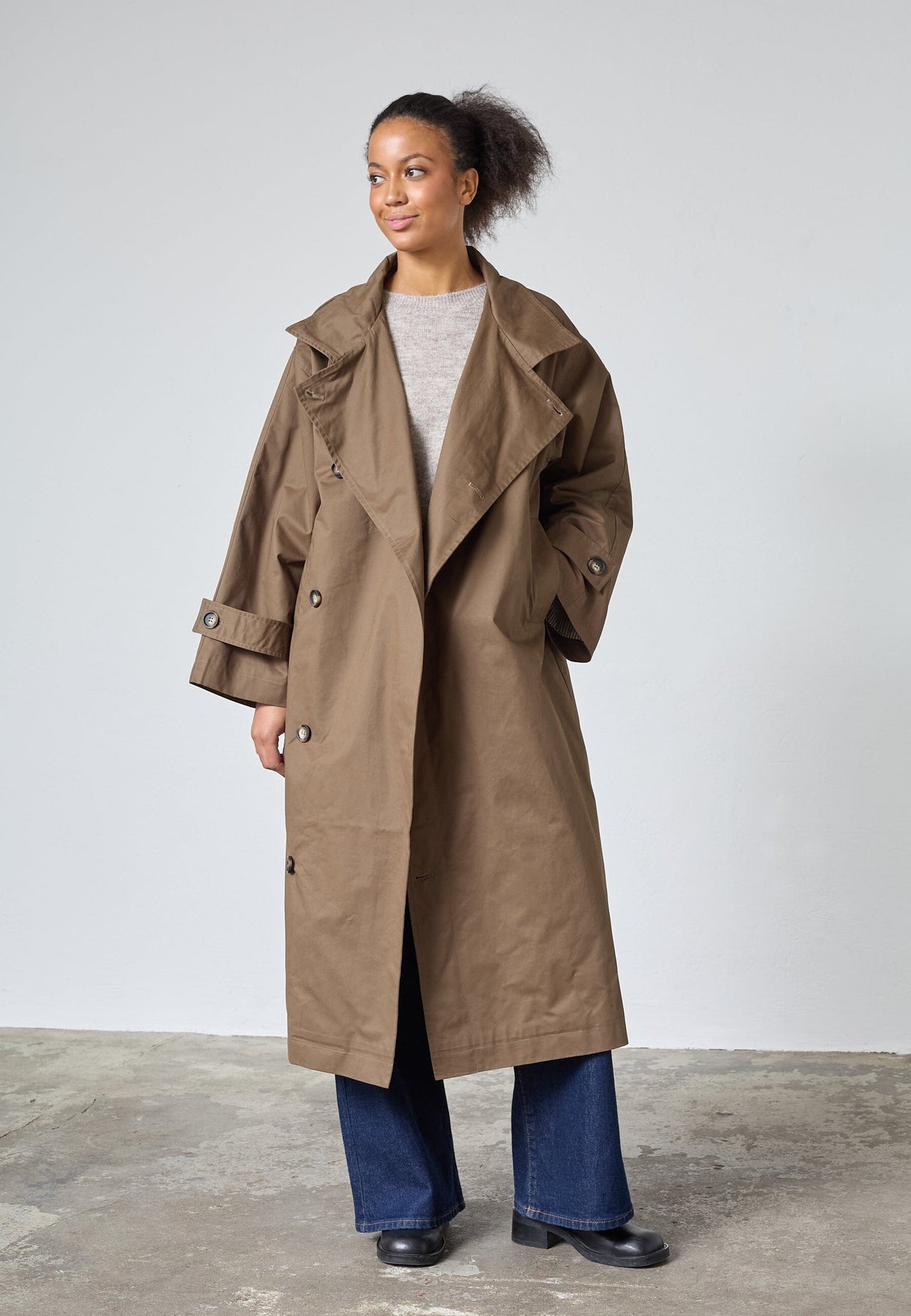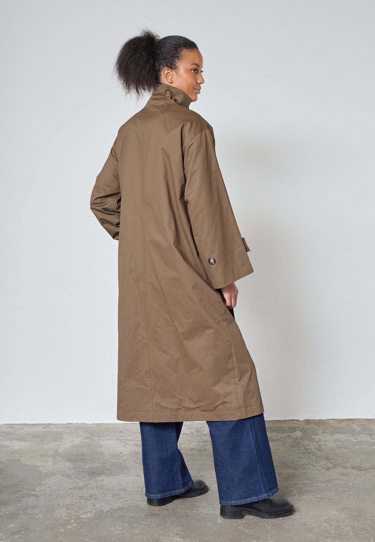 Lange, oversized trenchcoat van Sisters Point in een bruine tint. De jas is gemaakt van 100% katoen en heeft een knoopsluiting.