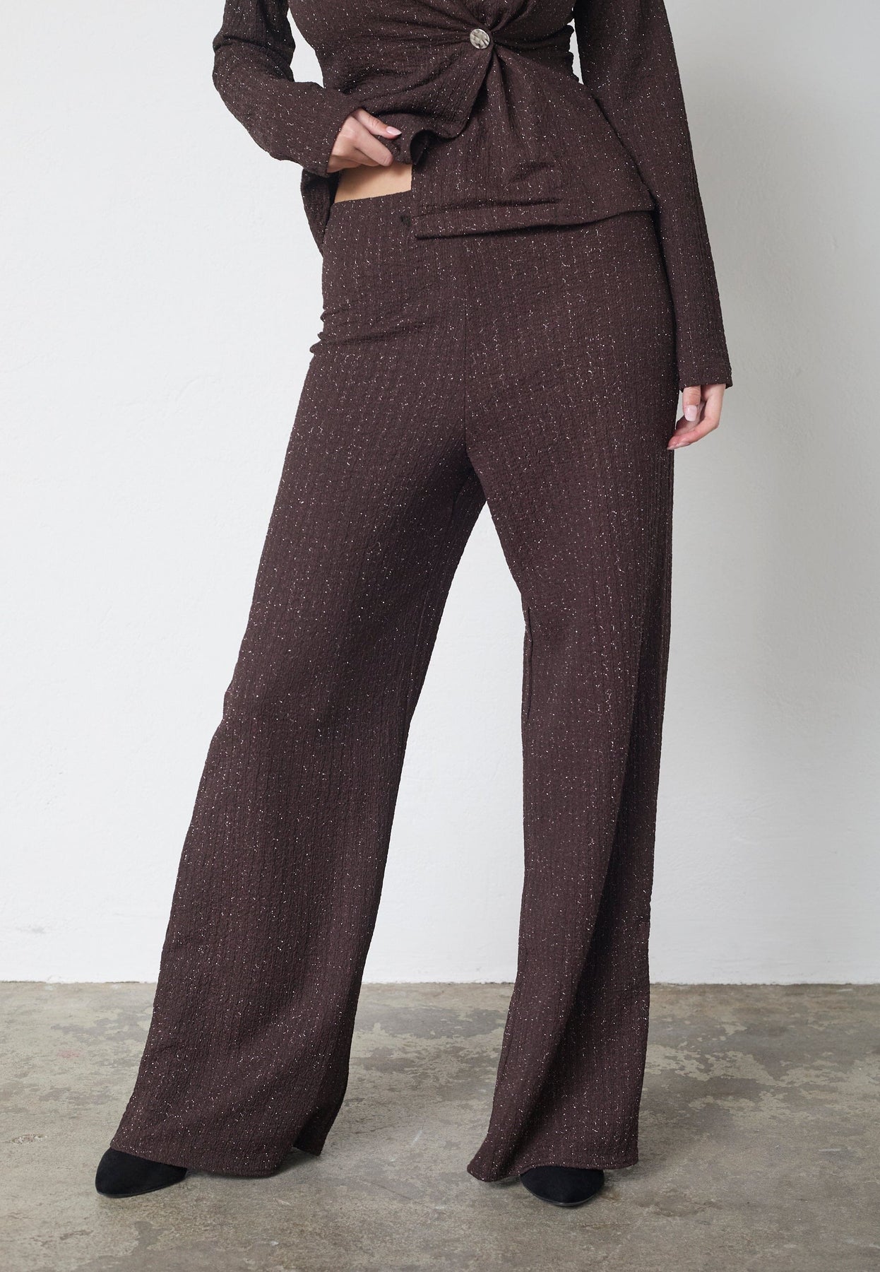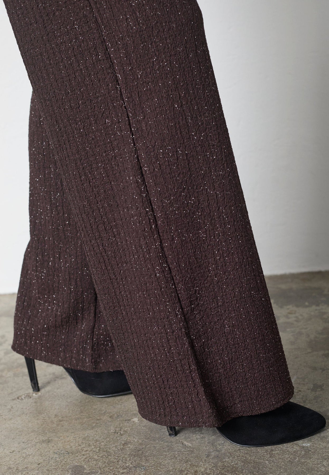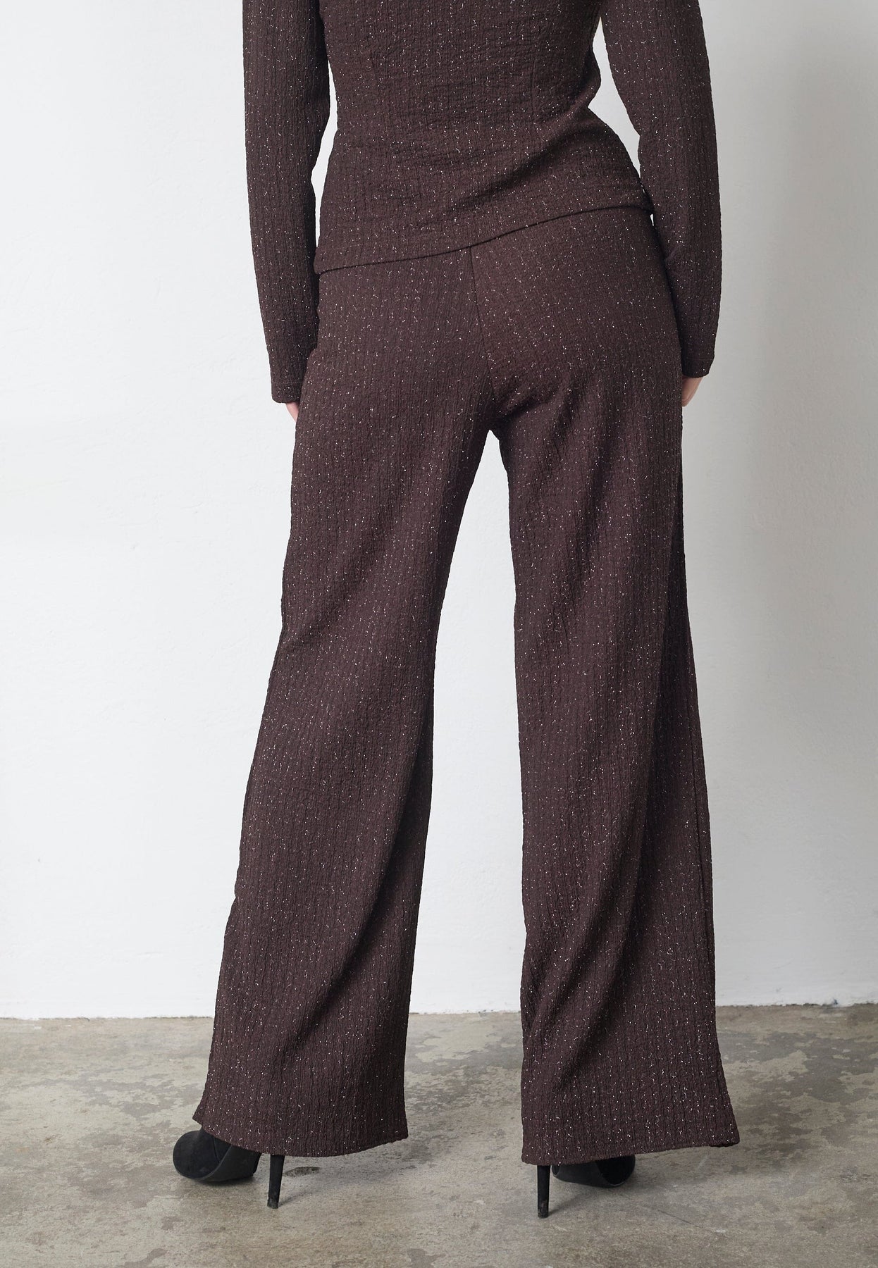 Broek van Sisters Point in een bruine kleur met zilverglans. De broek is geschikt voor zowel feestelijke als formele gelegenheden.