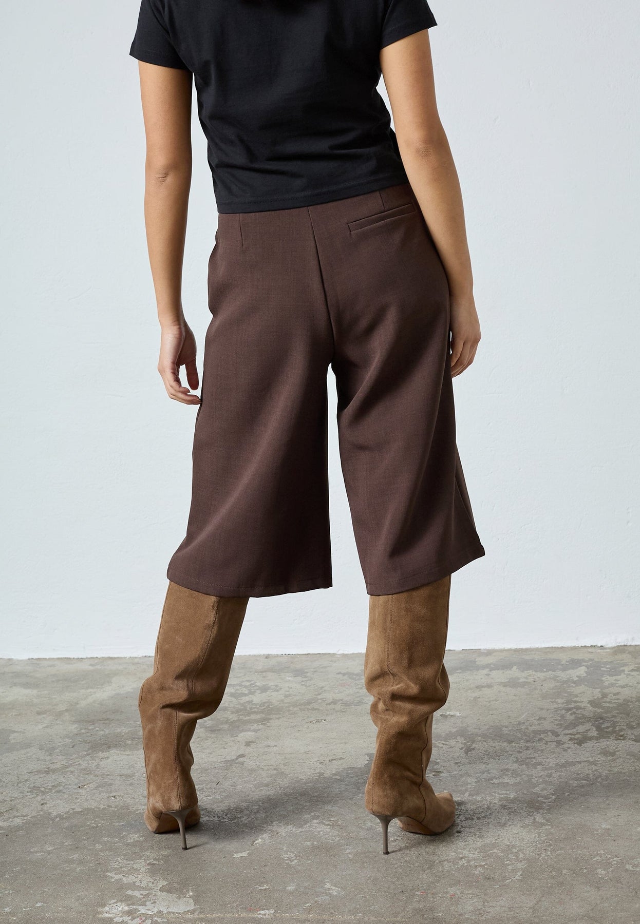 Chocoladebruine shorts van Sisters Point, gemaakt van 92% polyester en 8% elastaan. De shorts hebben een losse pasvorm en vallen net boven de knie.