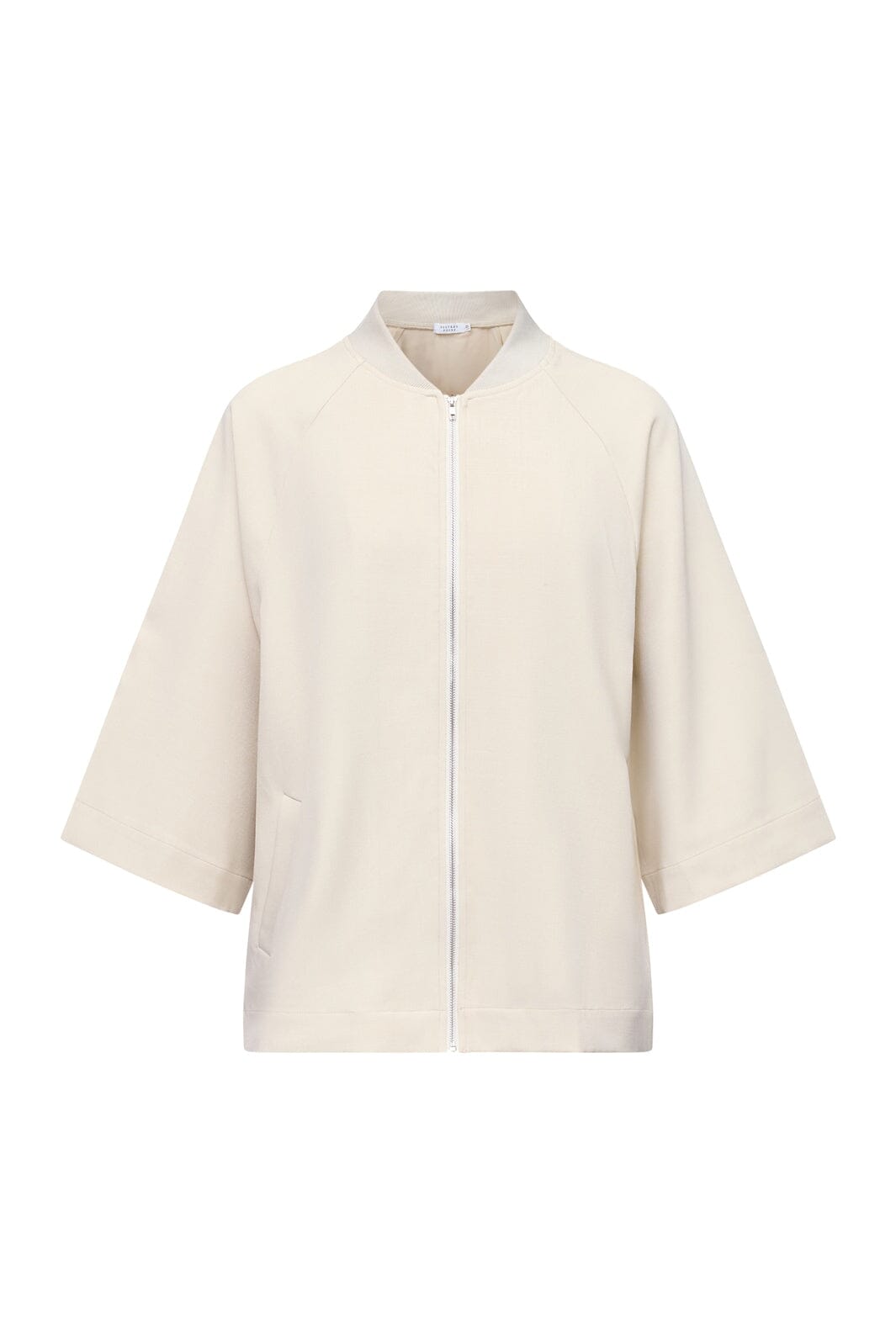 Jas van Sisters Point in een lichte grijsachtige tint genaamd Fog. Gemaakt van 100% polyester met een oversized pasvorm en een doorlopende ritssluiting.