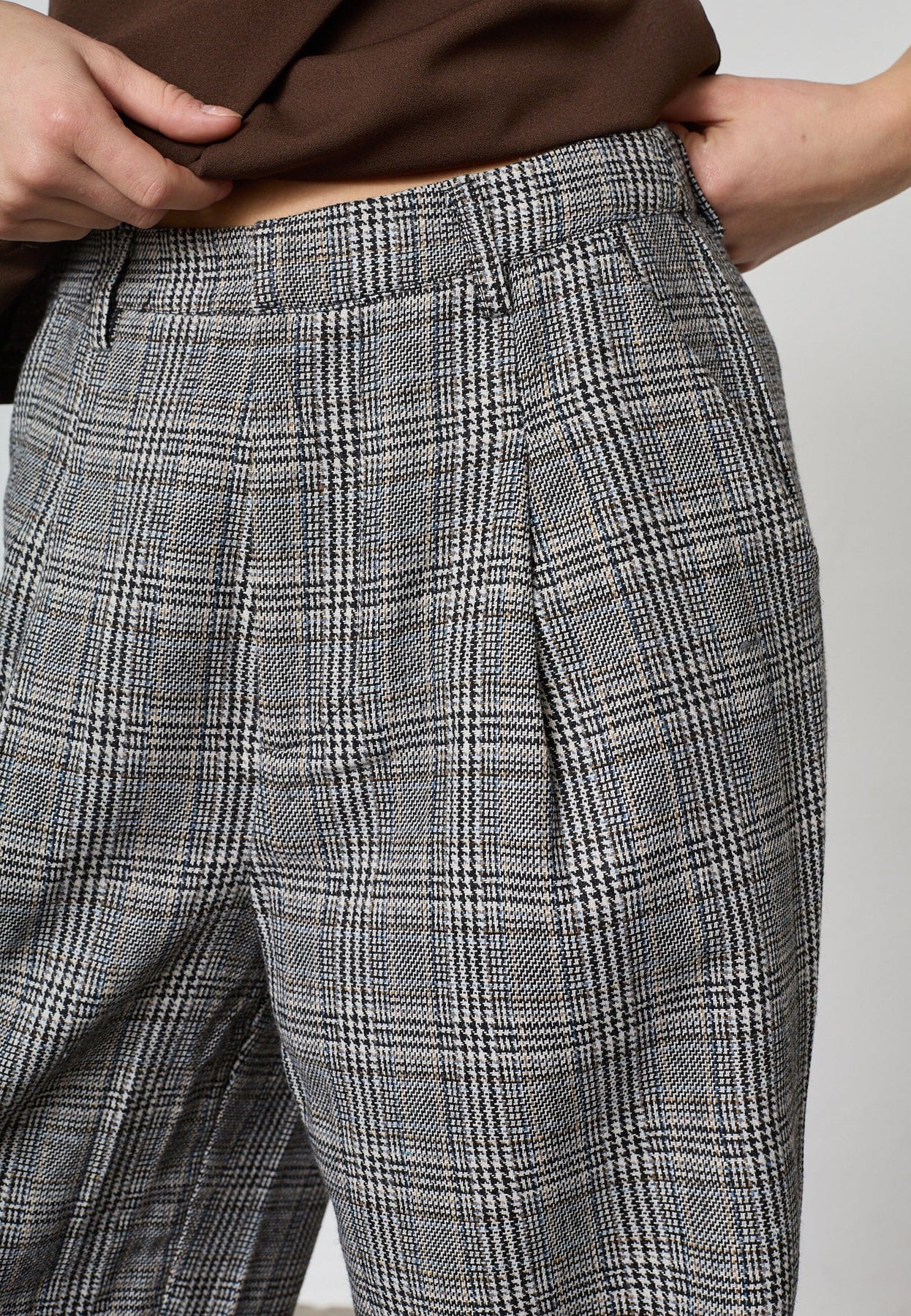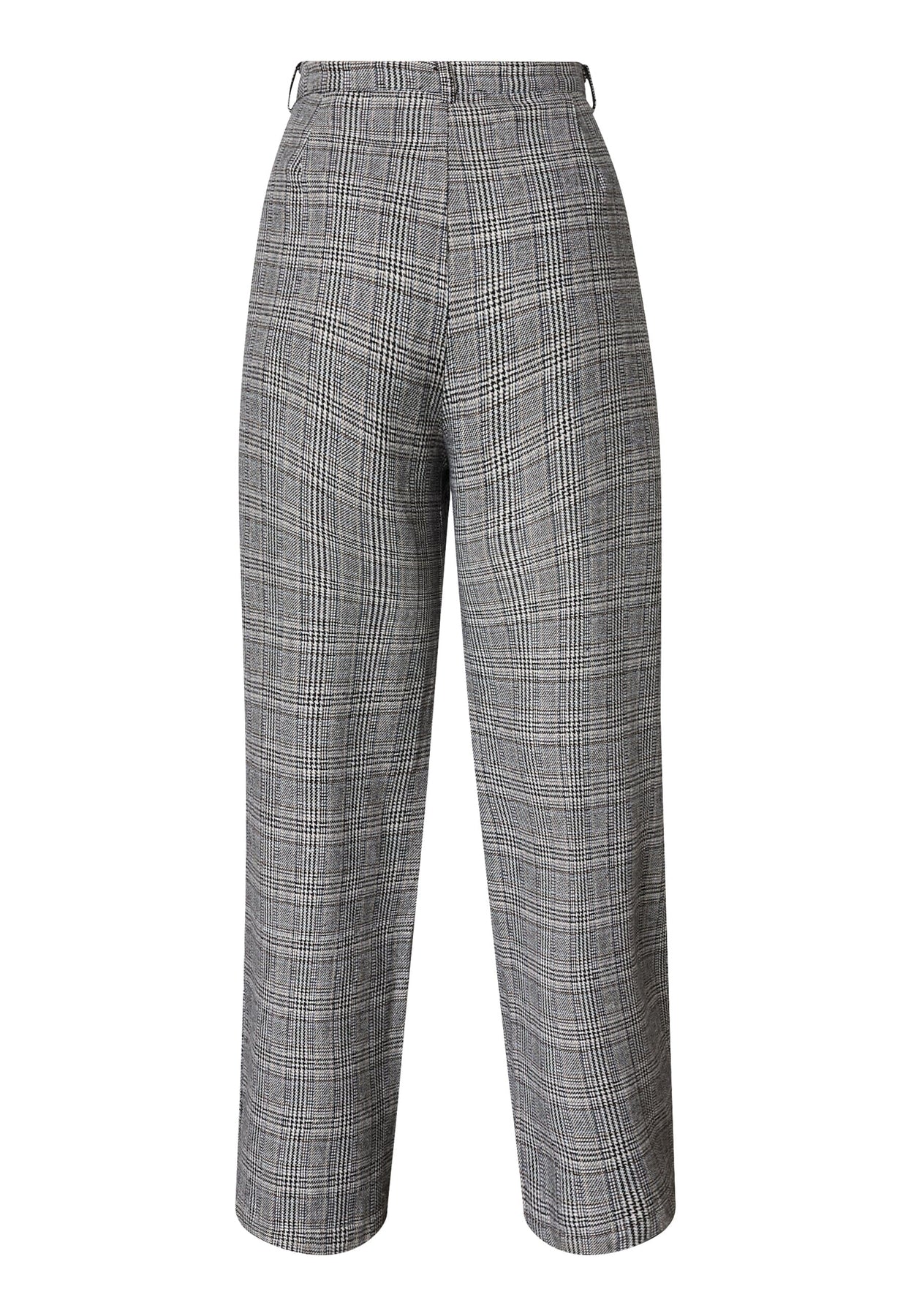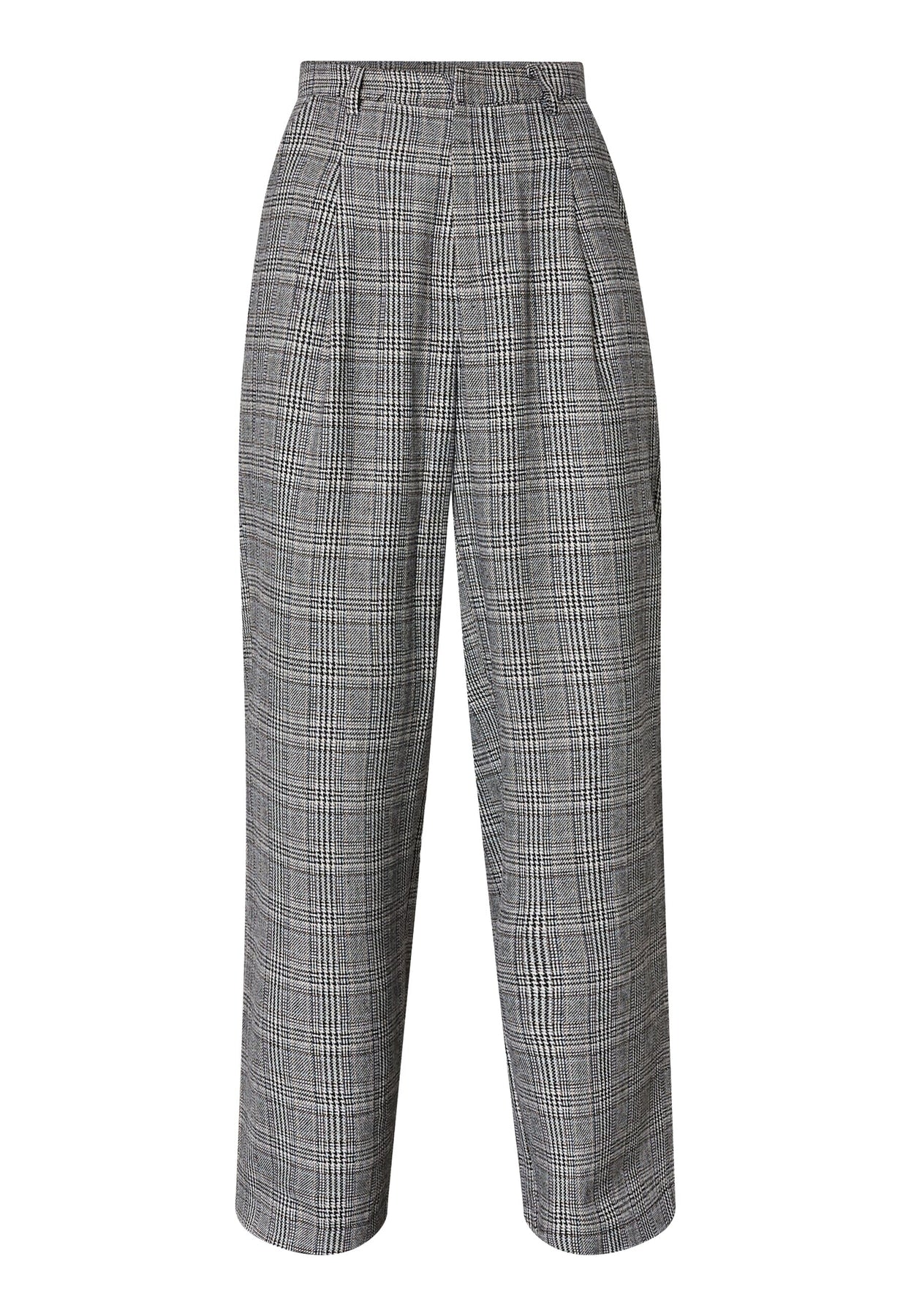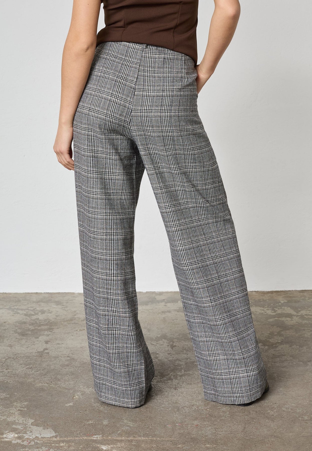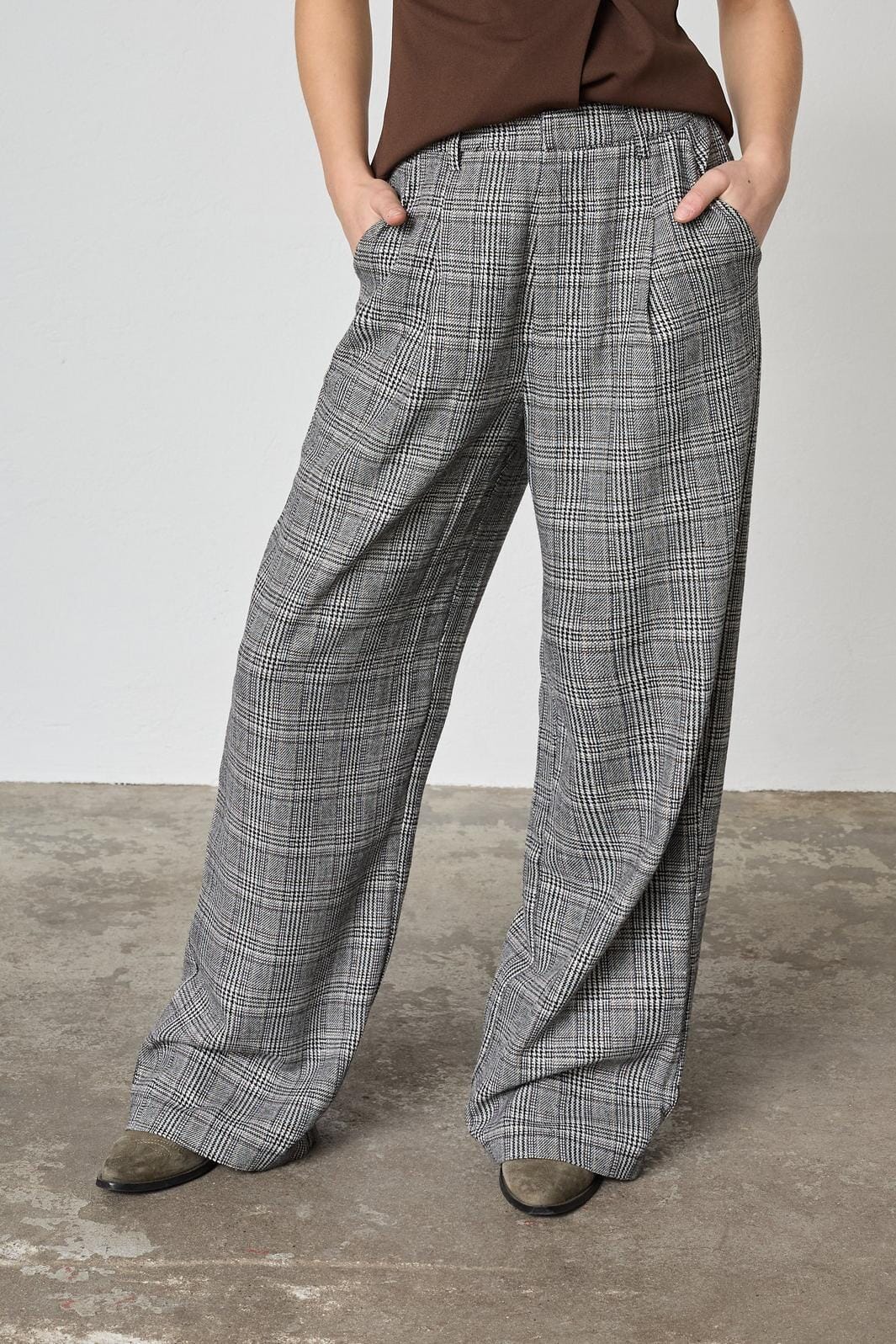 Grijze geruite broek van Sisters Point met een losse pasvorm. De broek heeft wijde pijpen en reikt tot op de grond. Het geruite patroon geeft een klassieke uitstraling.