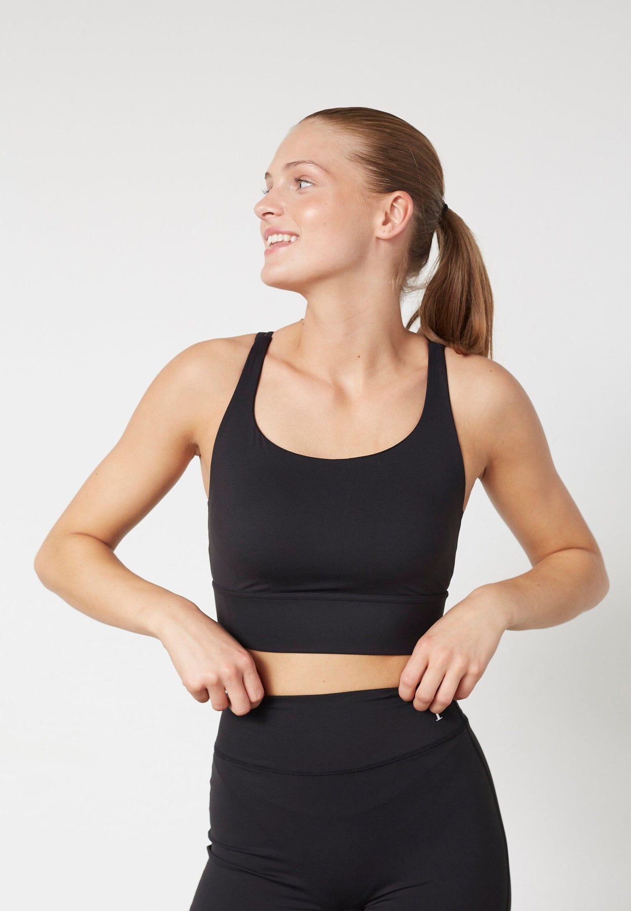 Zwart topje van Sisters Point met dunne spaghettibandjes en een ronde halslijn. Het topje heeft een aansluitende pasvorm in het zwart.