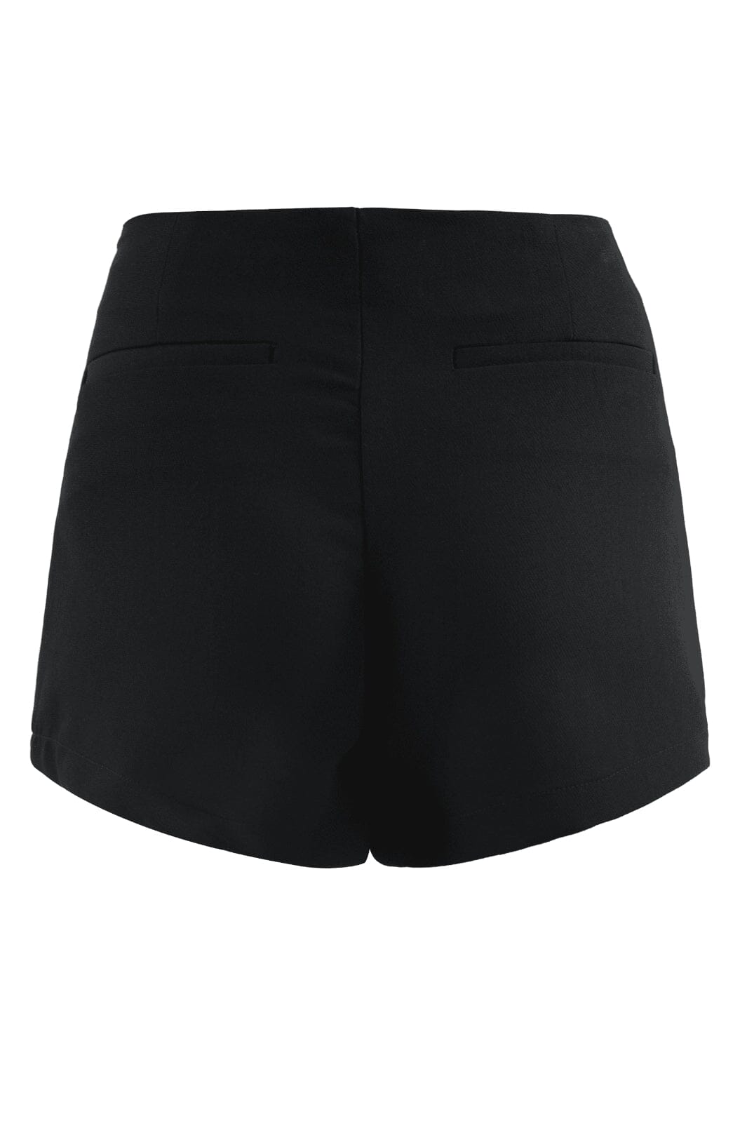 Et par korte shorts med et læg henover forsiden. Shortsene lukkes med en lynlås i den ene sidesøm.