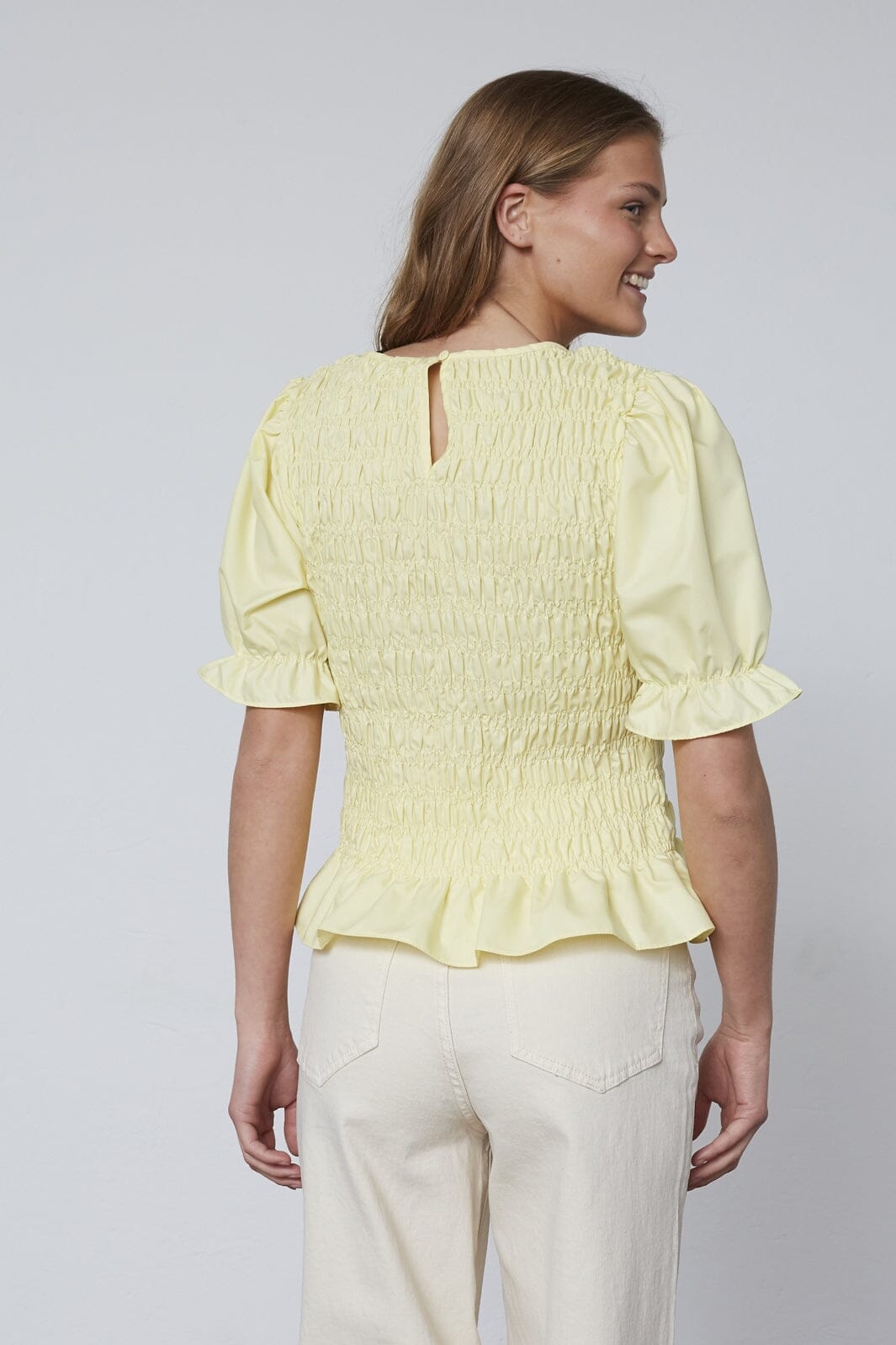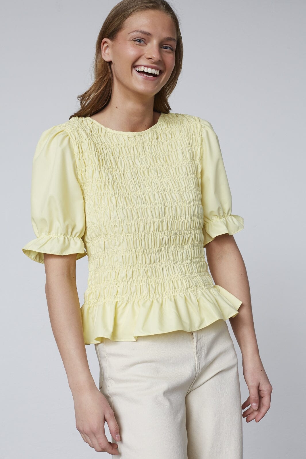 Een lichtgele blouse van Sisters Point met een schoon en eenvoudig ontwerp. De lichte kleur geeft een frisse uitstraling, en de blouse heeft een eenvoudige en tijdloze stijl.