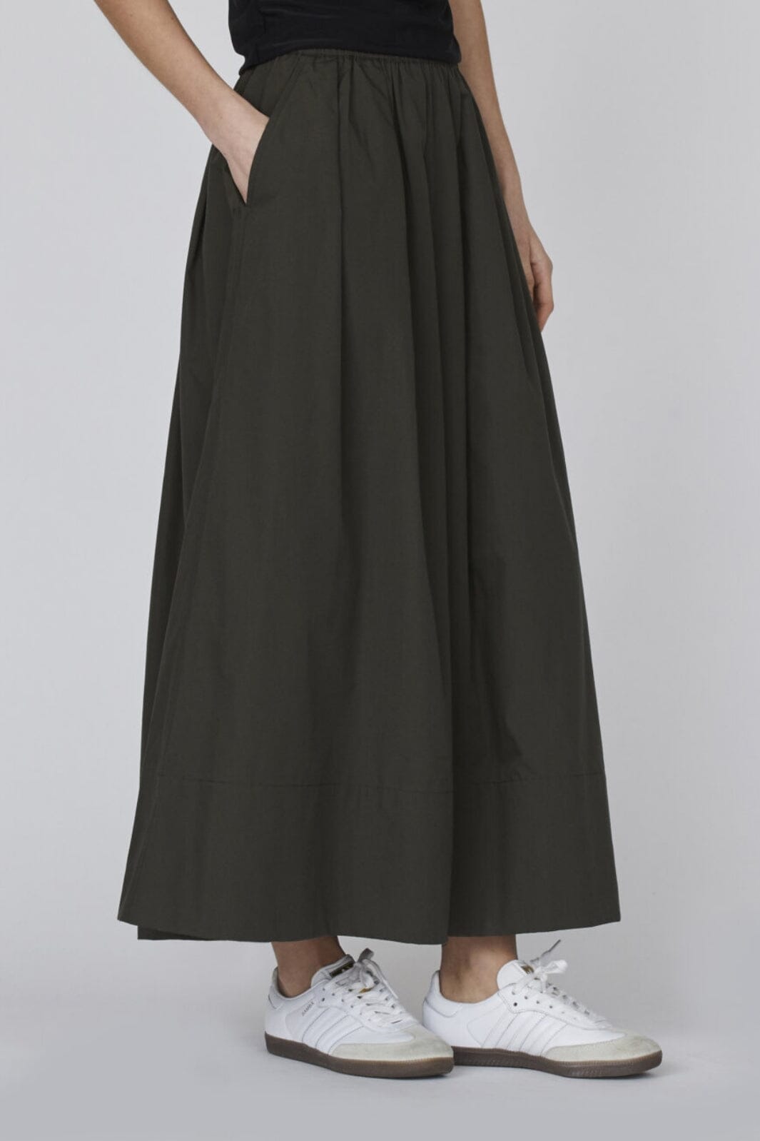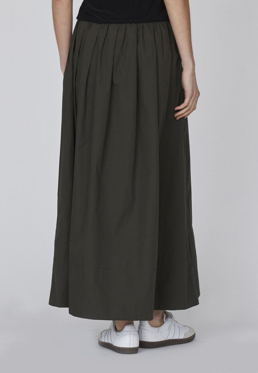 Lange rok van Sisters Point in khaki. Hij heeft een losse pasvorm en een elastische taille met zakken aan de zijkanten.