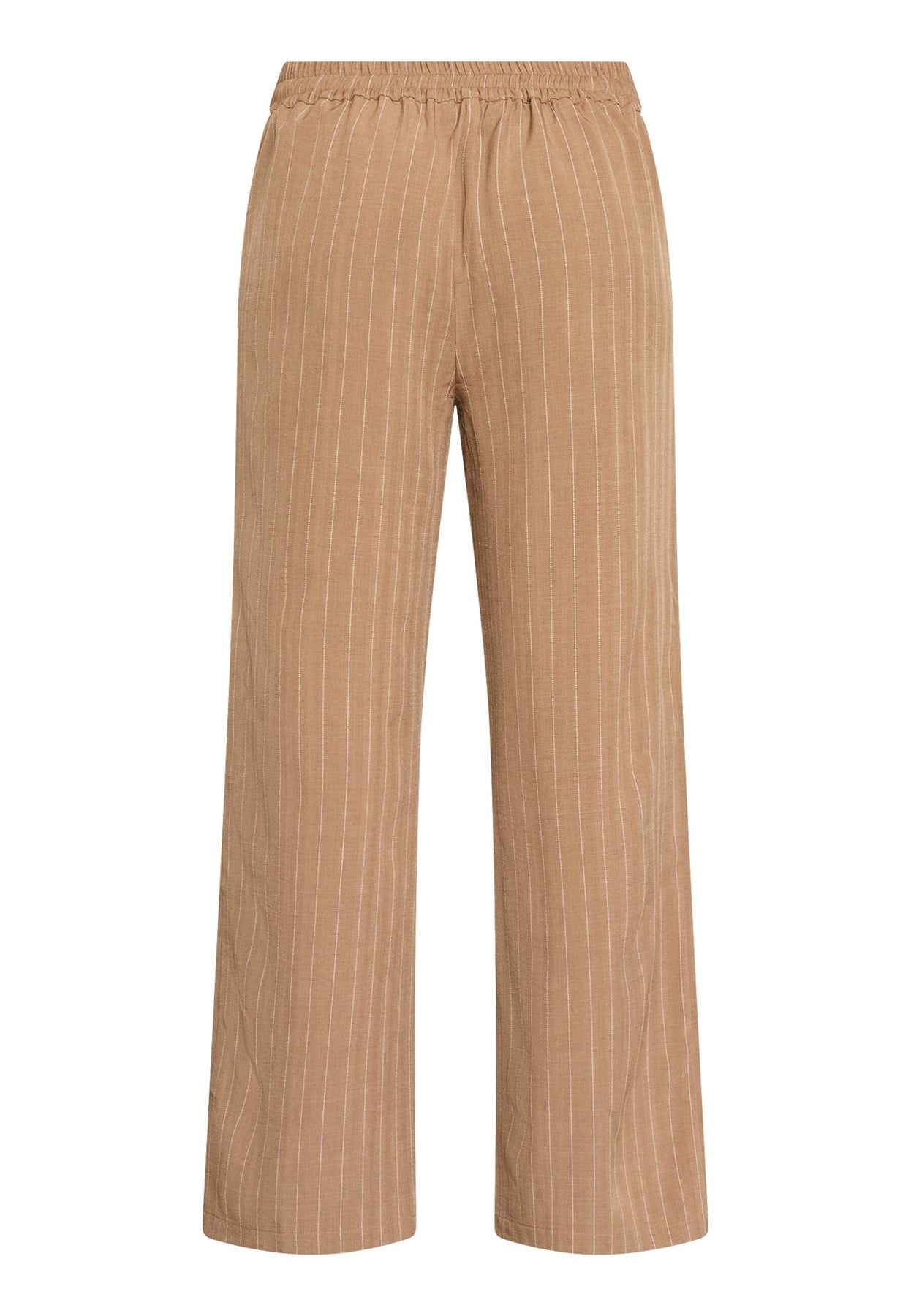 Bruine broek met krijtstreep van Sisters Point met wijde pijpen en een hoge taille. De broek is geschikt voor feestjes, alledaags gebruik en formele gelegenheden.