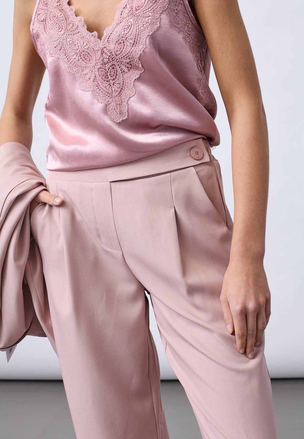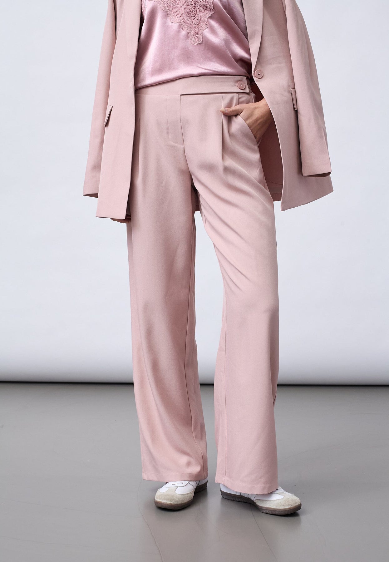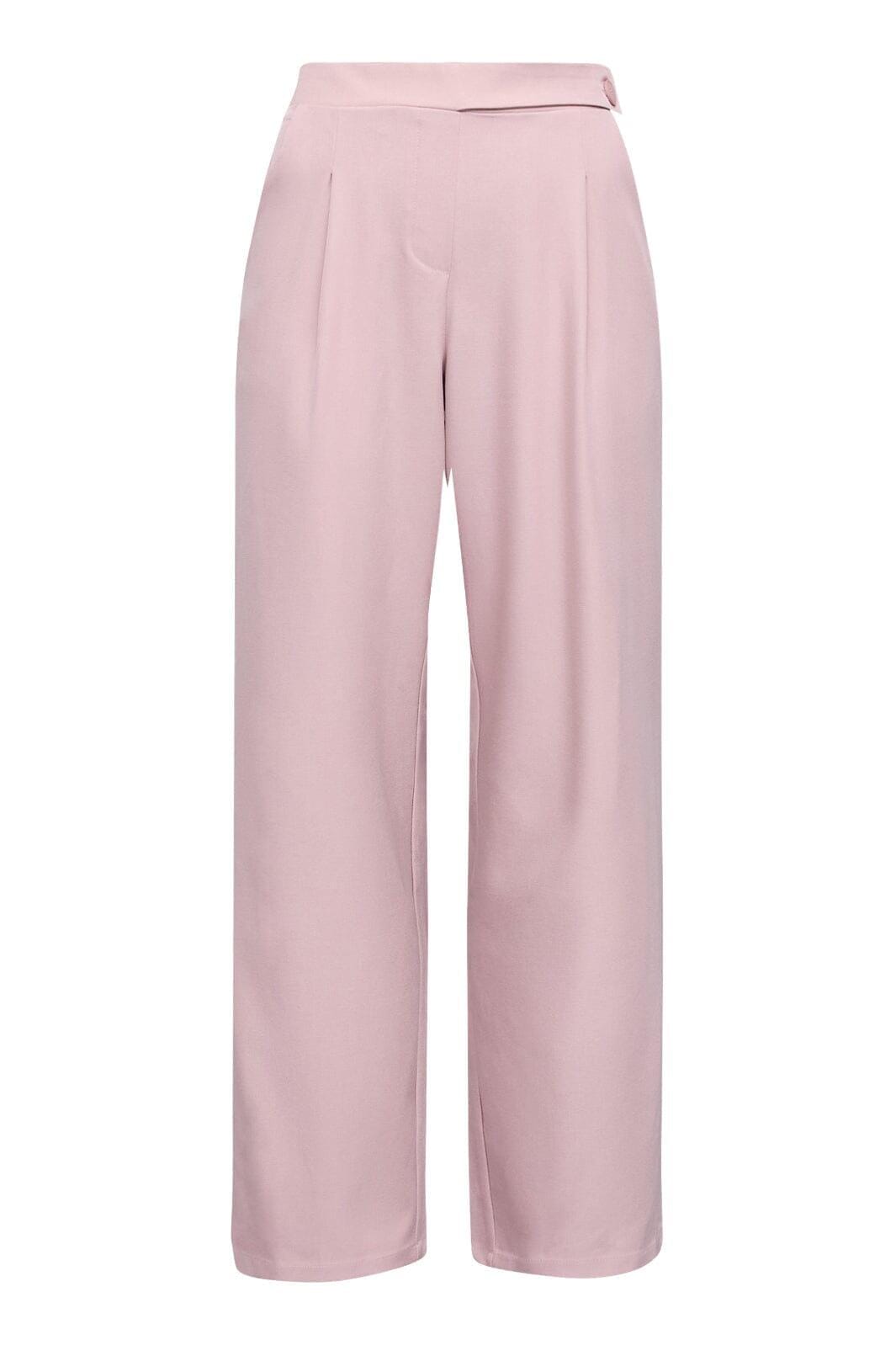 Paarse broek van Sisters Point met een wijde pasvorm en rechte pijpen. De broek heeft een hoge taille, elastiek aan de achterkant en een knoopdetail aan de zijkant.