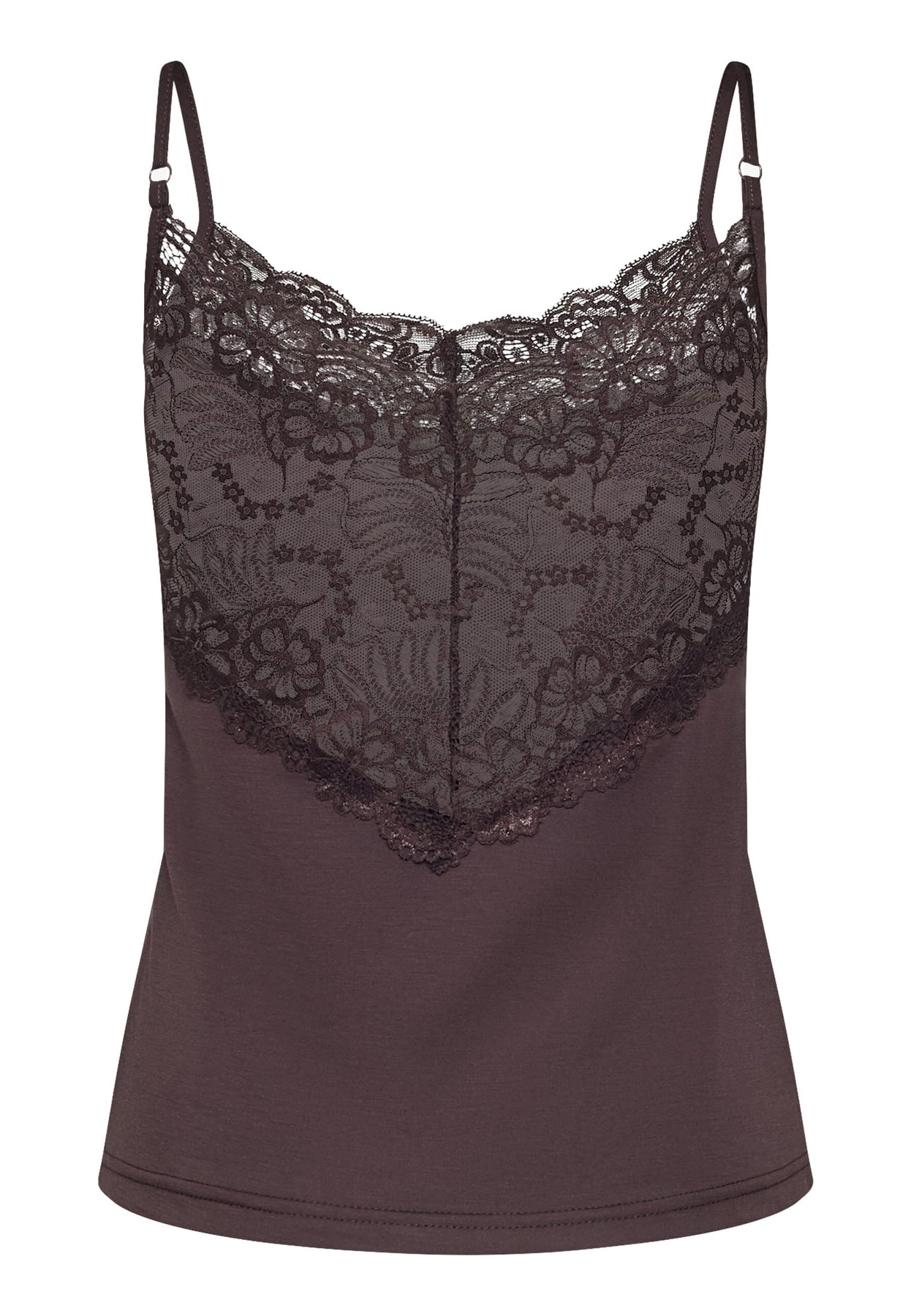 Top van Sisters Point in een diepe chocoladebruine tint. Gemaakt van 60% viscose, 35% polyester en 5% elastaan.