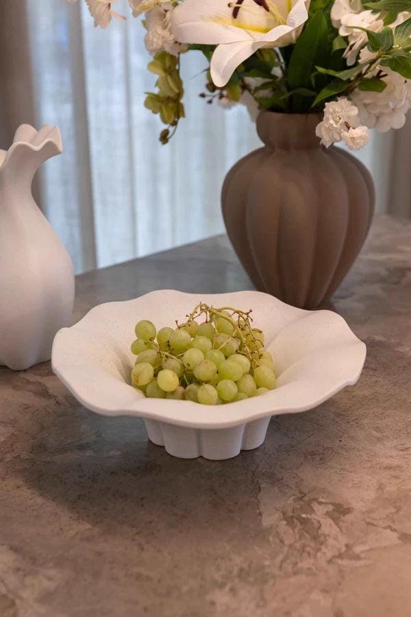 Keramische schaal van Specktrum met een gegolfde rand en een glad oppervlak. De schaal komt in een uniforme off-white tint, waardoor hij makkelijk te combineren is met ander servies.