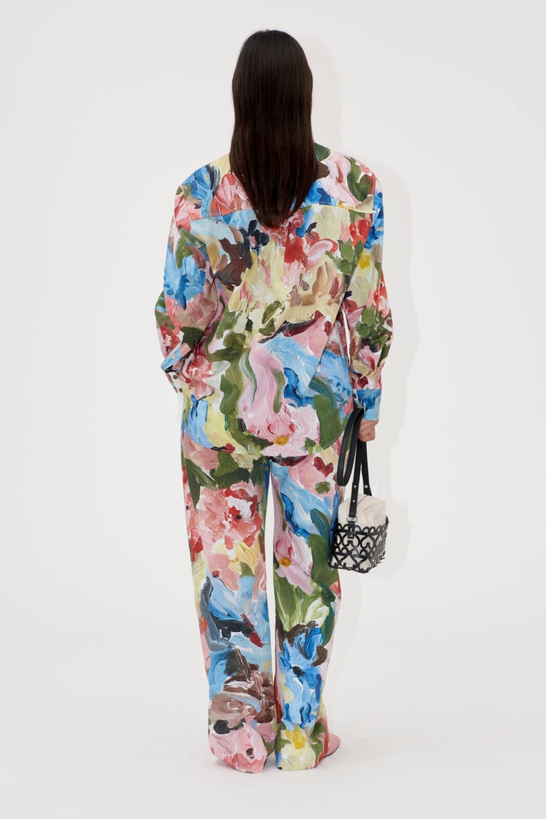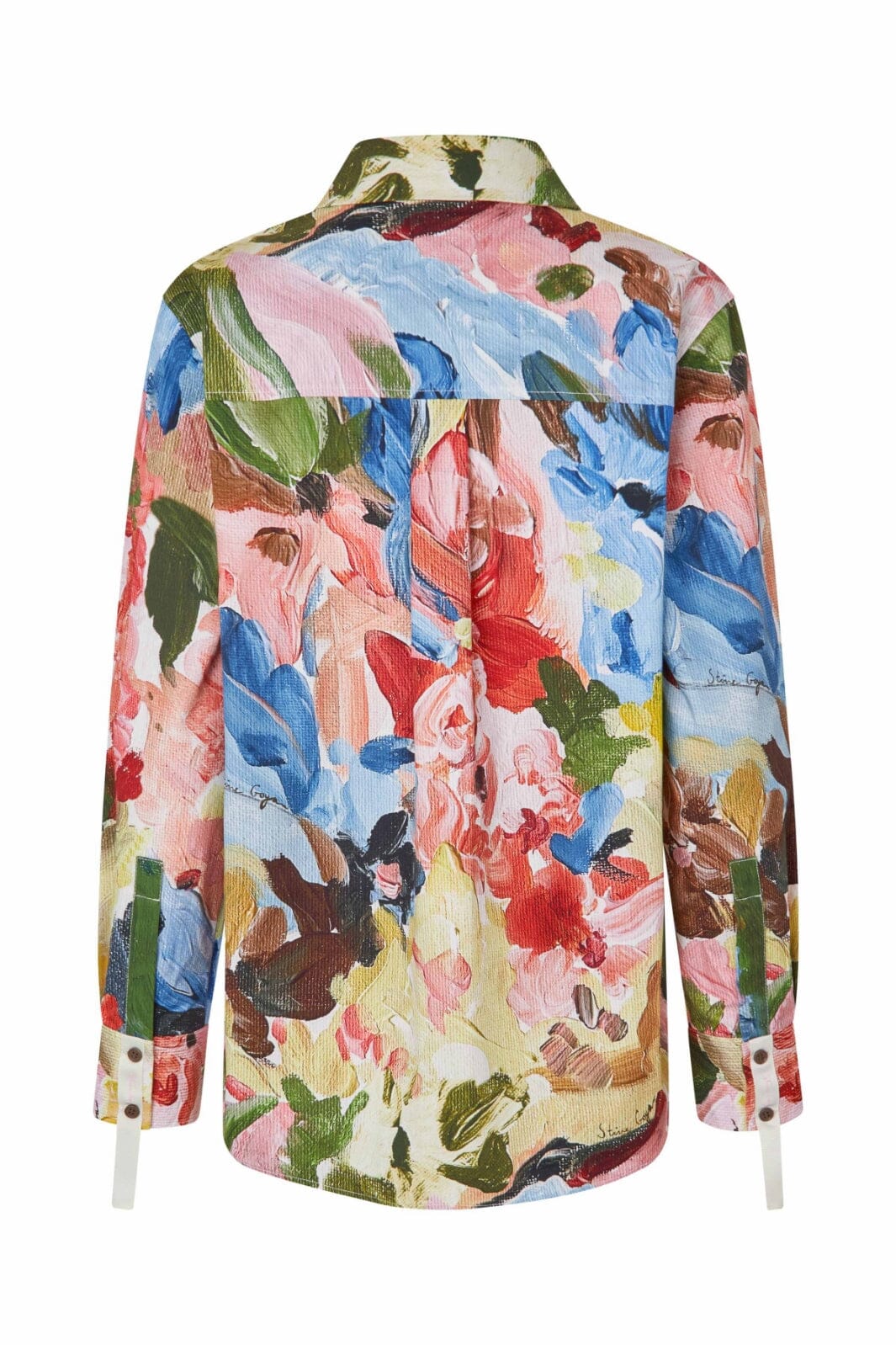 Shirt van Stine Goya met bloemenpatroon in roze, blauw en groene tinten. De middelzware katoen geeft het shirt een mooie val en een goede structuur.