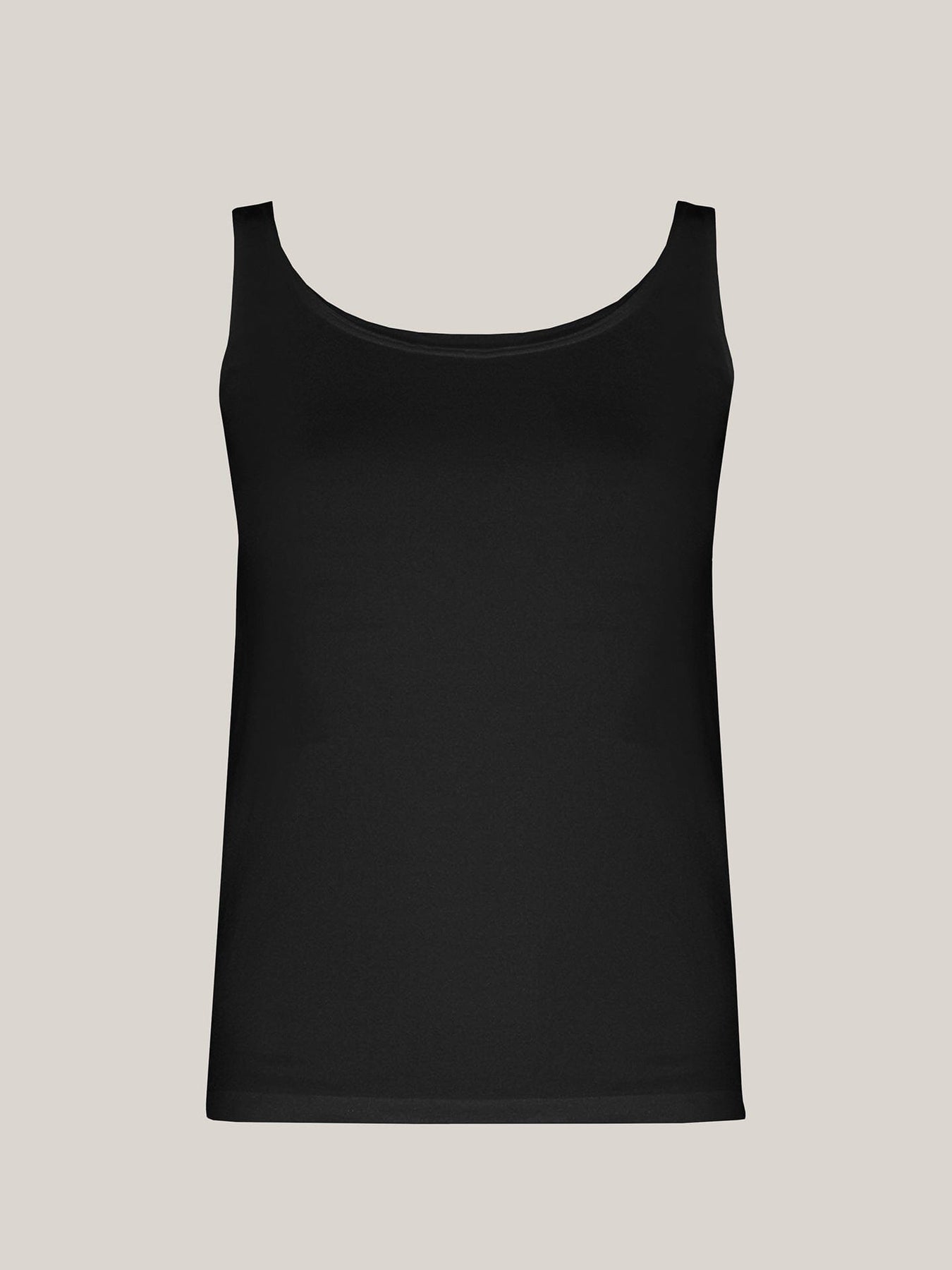 Zwarte, mouwloze top van Wolford met een aangesloten pasvorm en een ronde halslijn. De zwarte kleur maakt het eenvoudig om deze te combineren met de rest van de garderobe.