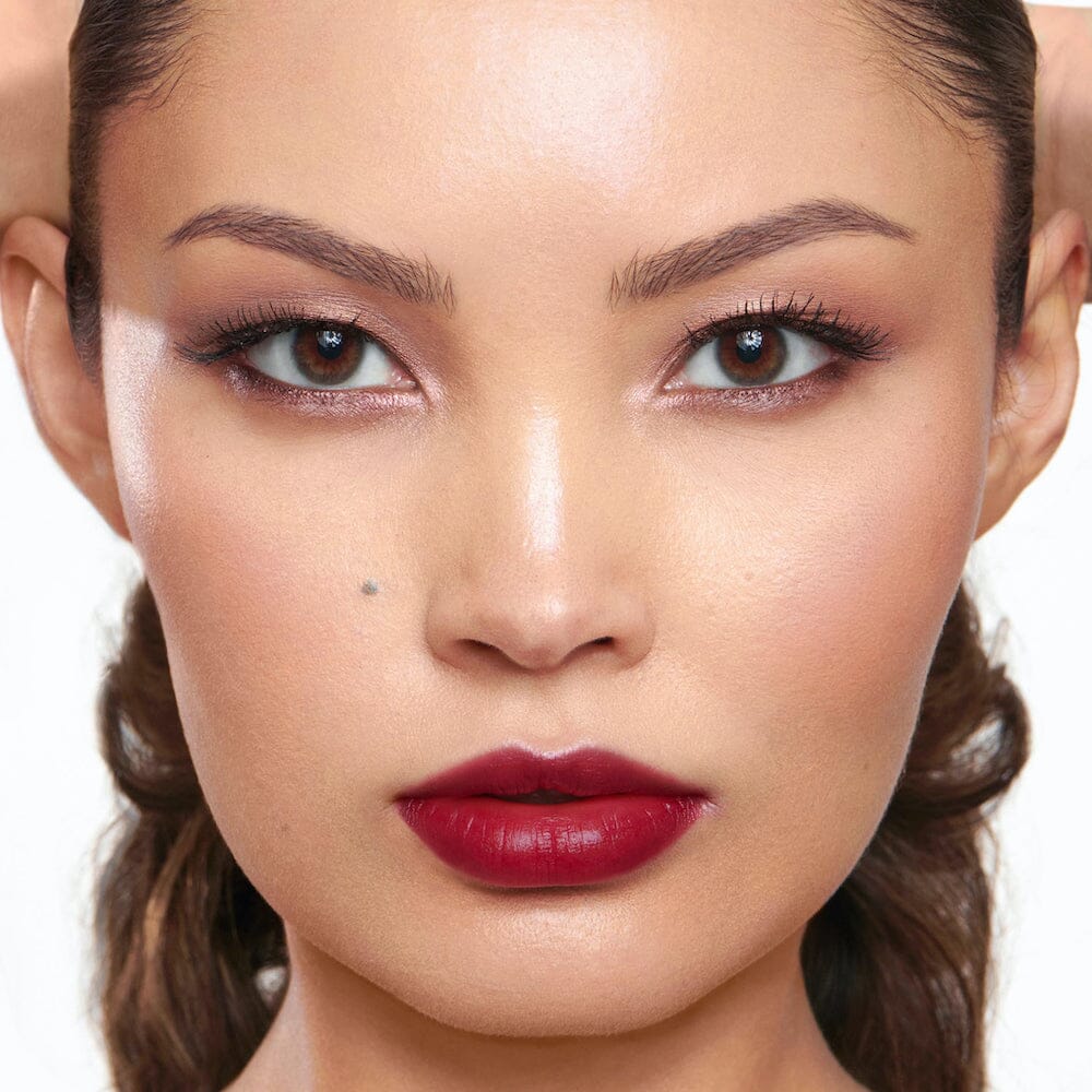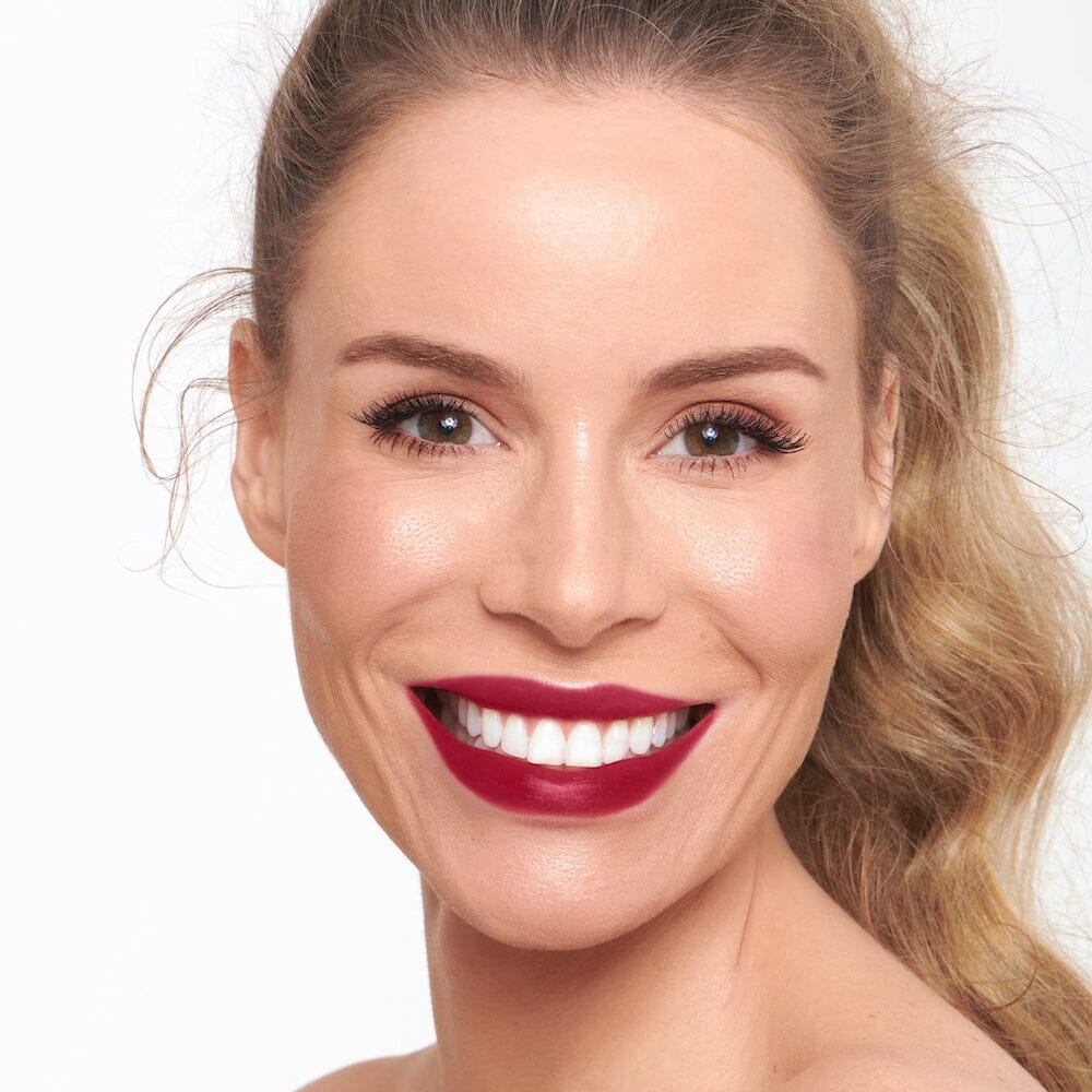 Twee-staps lippenstift in een diepe bordeauxrode tint. Het systeem bestaat uit een lip stain en een activator die samen een langdurige kleur geven.