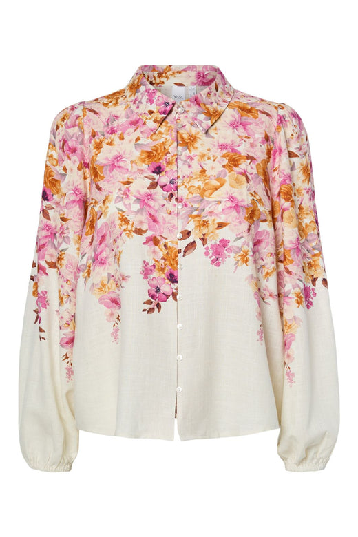 Shirt van Y.A.S met een lichte basis en bloemenprint in roze en oranje tinten. Het heeft een overhemdkraag, knoopsluiting en lange pofmouwen.