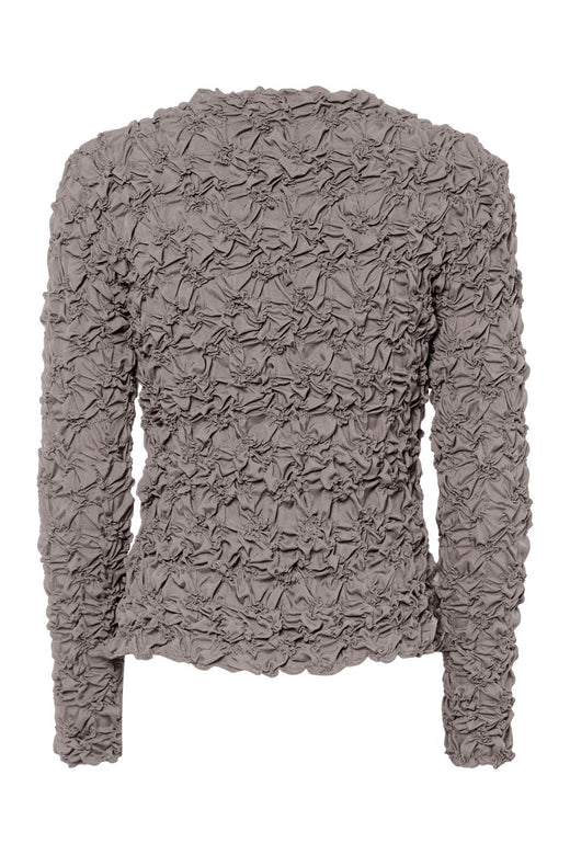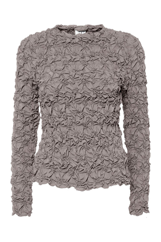 Langarmige top van Y.A.S in grijsbruine polyester. De top heeft een doorlopende gekreukelde structuur, een ronde halslijn en een nauwsluitende pasvorm.