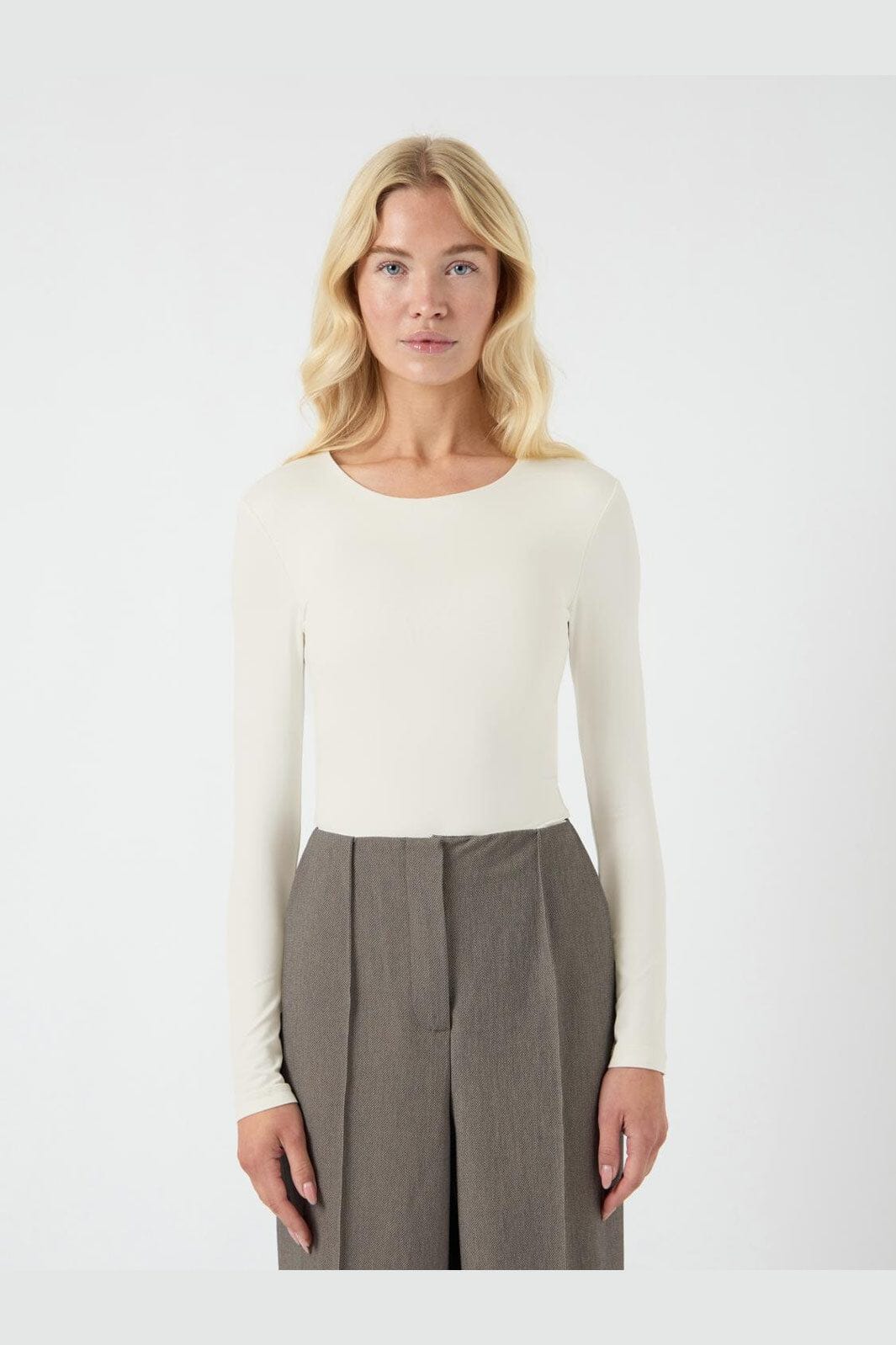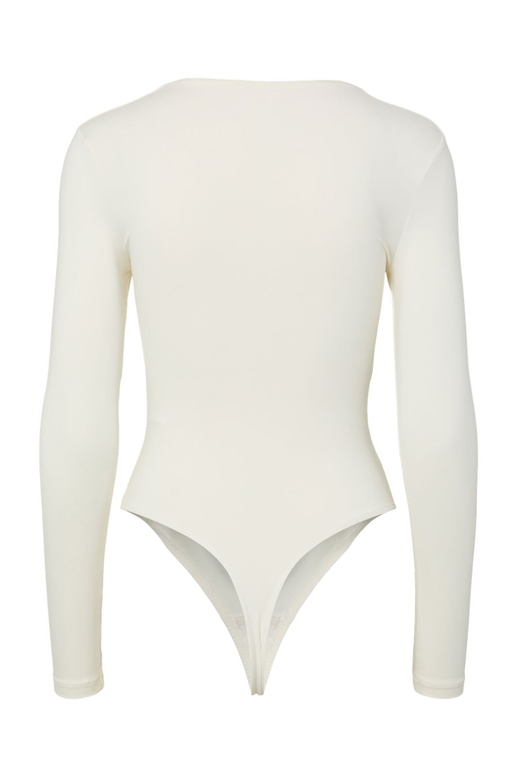 Witte body van Y.A.S met lange mouwen en een hoge hals. Het nauwsluitende model is gemaakt van rekbaar jerseymateriaal, dat zorgt voor een goede pasvorm voor zowel alledaagse als feestelijke gelegenheden.